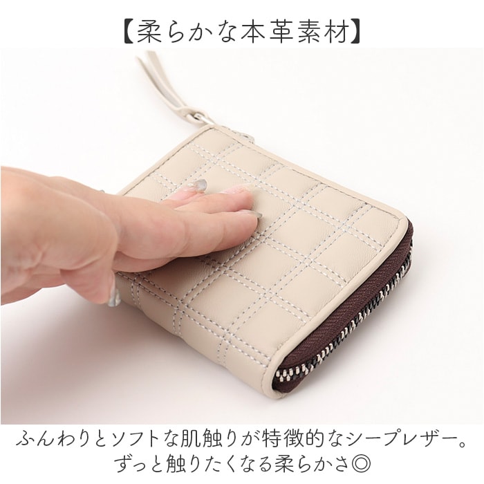 | 商品説明 | 【人気デザインが復刻♪】ルービックキューブから着想を得たキルティング財布シリーズがSOLATINAから発売。【柔らかな本革素材】ふんわりとソフトな肌触りが特徴的なシープレザー。ずっと触りたくなる柔らかさ◎【キルティングで特徴的な見た目】ふっくらとしたキルティング加工を施し、ルービックキューブのような見た目が特徴的。【コンパクトなサイズ感】小さいカバンやアウターのポケットに入るサイズ感で持ち出しに便利☆【かさばらない薄マチ設計】厚みがない薄マチ設計なのでポシェットなどに入れてもかさばらないのも嬉しいポイント。【手に馴染んで使いやすい】持ち出しに便利なだけでなく、女性の手のひらにも収まるサイズなので使いやすさも◎【収納力あり】カードポケットはもちろん、お札入れや小銭入れも搭載しており現金派の方にもオススメ♪【小銭が見渡せるボックス】小銭入れはボックス型になっており、パッと見渡せる。【スリットで出し入れスムーズ】お札入れはスリットタイプにすることにより、お札の取り出しがスムーズに。【エイジ・ジェンダーレスで】シンプルなワンカラーのデザインで年代・性別問わず使えるのも魅力。【映えるカラーファスナー】銀と黒のカラーファスナーを採用。メタリックな色調がアクセントに!【最高峰のYKKファスナー】カラーファスナーはYKKファスナー「エクセラ」を採用。機能性にもこだわりあり。【L字型でスマートに】開け閉めしやすく、大きく開くL字型のファスナー構造。現金やカードのやり取りがスマートに【ブランドロゴ入り】ファスナーの引手とカードポケットにブランドロゴを配置。【専用BOX付きでギフトにも最適】洗練された素材感とデザインが、特別な贈り物としてお相手への想いも伝わる。【ポケット仕様】カードポケット×3、小銭入れ×1、お札入れ×1、フリーポケット×1 |