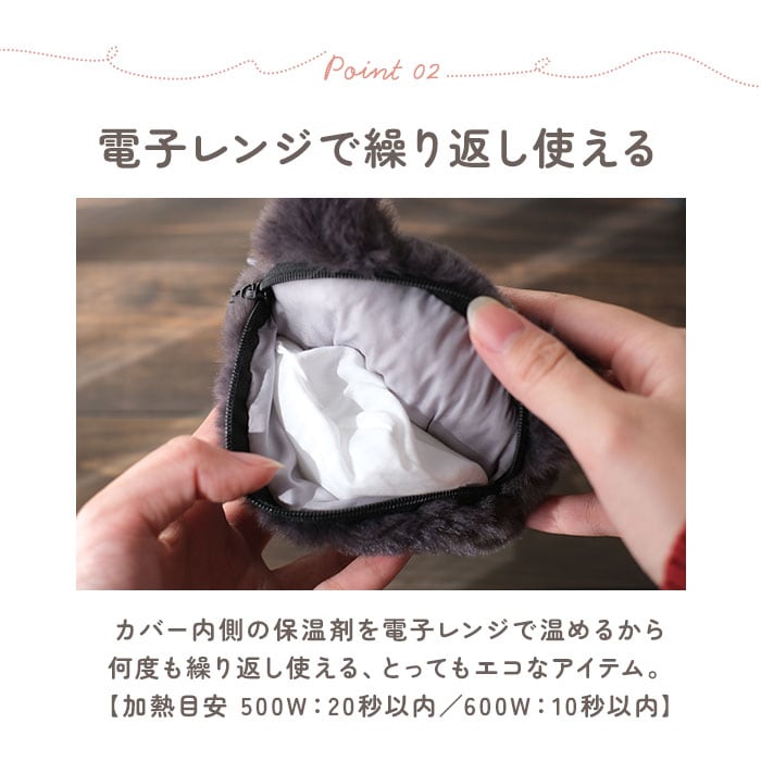 | 注意点 | [カバーのみ]手洗い 可 ドライクリーニング 可 乾燥機 不可電子レンジのみ可 (加熱時間の目安)500W 20秒以内:600W 10秒以内長時間日光にあたったり、摩擦、水漏れなどによる色落ちや色移りすることがあります。お取り扱いの際は、商品やパッケージなどに記載されている品質表示、アテンションタグ、ご使用上の注意事項などを必ずご確認下さい。本来の目的以外にはご使用にならないで下さい。カメラやモニターの性質により、画像と実物の色の違いがある場合がございますのでご理解願います。 |