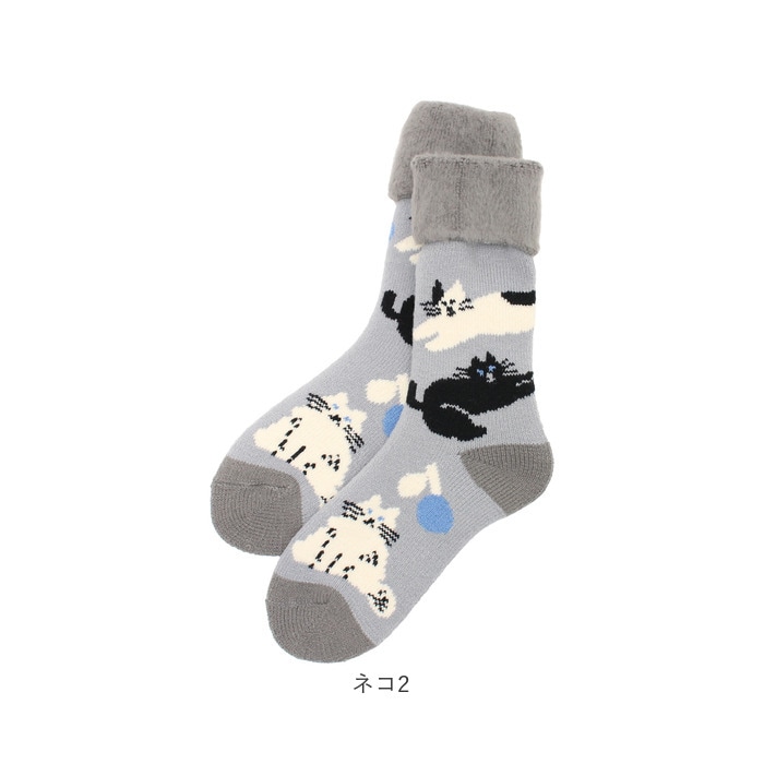 スワンネルおやすみ靴下刺繍【ネコ2】