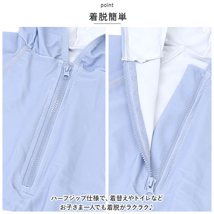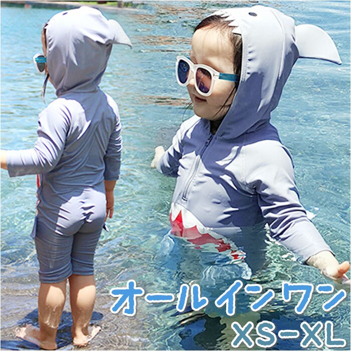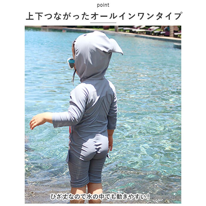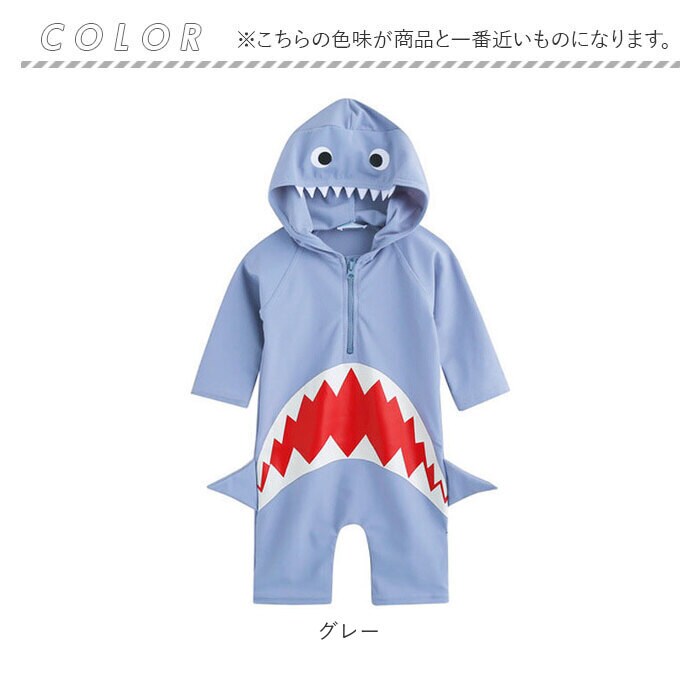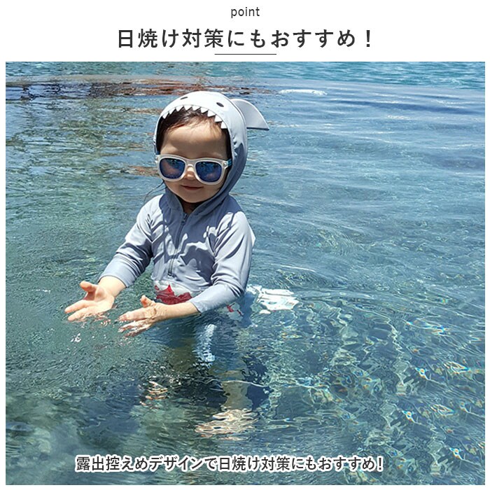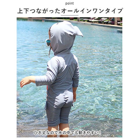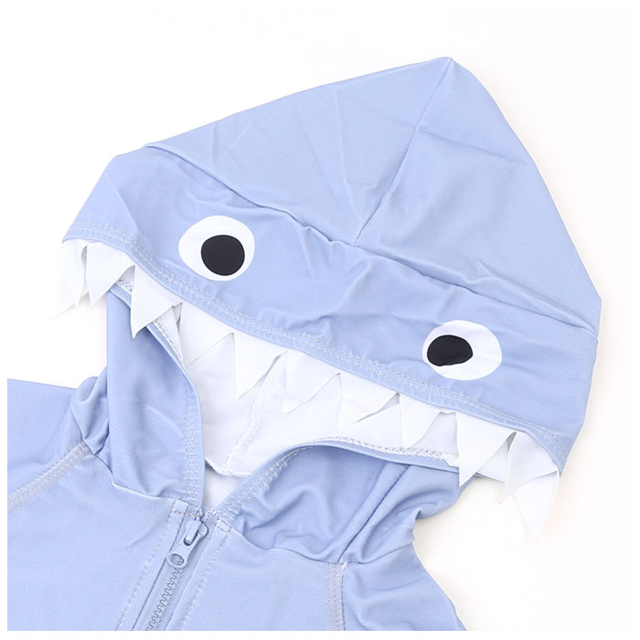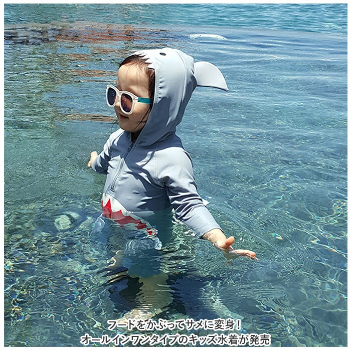 | 商品説明 | フードをかぶってサメに変身!オールインワンタイプのキッズ水着が発売。【日焼け対策】露出控えめデザインで日焼け対策にもおすすめ!【着脱簡単】ハーフジップ仕様で、着替えやトイレなどお子さま一人でも着脱がラクラク♪【動きやすい】上下つながったオールインワンタイプ。ひざ丈なので水の中でも動きやすい!【キュートなデザイン】フードの部分にはサメの歯や背びれがついていてかっこいい!サメになりきって元気に泳いじゃおう♪ |