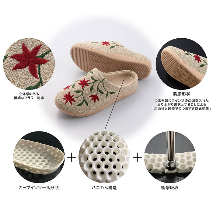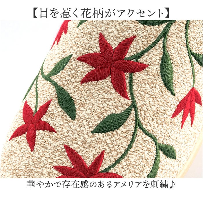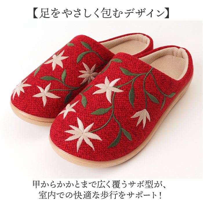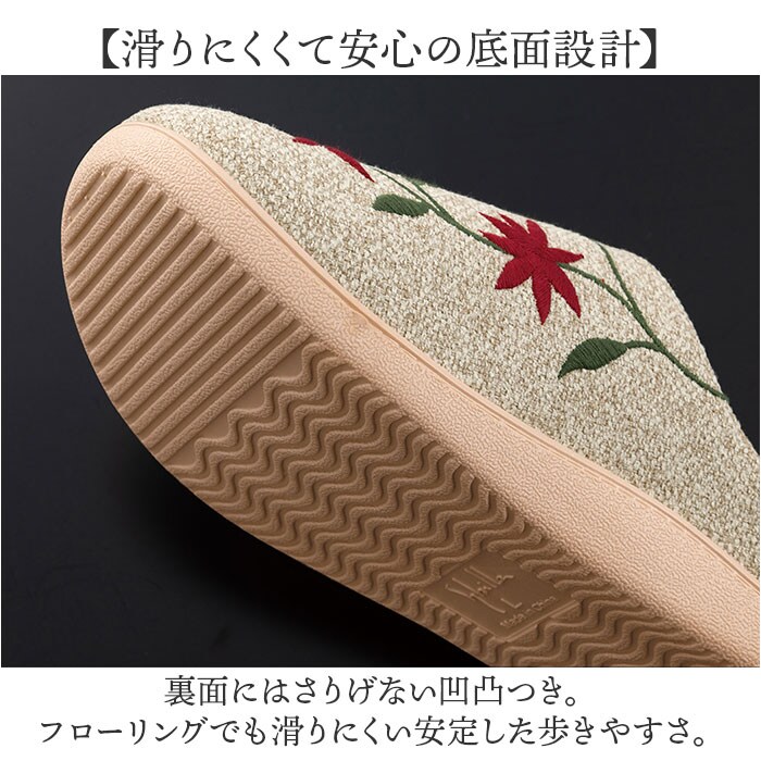 | 商品説明 | 【上品な刺繍が大人可愛い♪】足元を彩る室内用「シビラ サボ型スリッパ」が登場。【足をやさしく包むデザイン】甲からかかとまで広く覆うサボ型が、室内での快適な歩行をサポート!【目を惹く花柄がアクセント】華やかで存在感のあるアメリアを刺繍♪【丸洗いで清潔キープ】インソール取り外し可。洗濯機でそのまま洗えるから、いつでも清潔な状態を保てて衛生的◎【滑りにくくて安心の底面設計】裏面にはさりげない凹凸つき。フローリングでも滑りにくい安定した歩きやすさ。 |