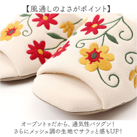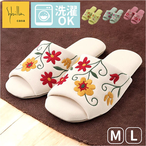 シビラ スリッパ オープントゥ【フラワーガーデン2.グリーン】【M(22-24cm)】