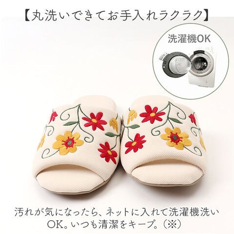 | 商品説明 | 【サラッと気持ちの良い履き心地♪】洗濯機で丸洗いOK、いつでも清潔にできる!「シビラ スリッパ オープントゥ」が登場。【おうち時間をもっとおしゃれに☆】足先までかわいく仕上げてくれる、こだわりデザインのスリッパ。繊細な刺繍デザインがGOOD!【風通しのよさがポイント】オープントゥだから、通気性バツグン!さらにメッシュ調の生地でサラッと感もUP!【ほどよい厚みと硬さで疲れにくい】クッション性とほどよい硬さのある底板で、足裏にかかる衝撃を吸収。長時間の着用も楽々。【傷つきや滑りを防ぐ安心設計】底面に滑り止め加工済み。フローリングを傷つけにくく、静音効果でパタパタ音も気にならない◎【丸洗いできてお手入れラクラク】汚れが気になったら、ネットに入れて洗濯機洗いOK。いつも清潔をキープ。(※)洗濯機の弱モード使用、タンブラー乾燥は避けてください。【お好みのカラーをチョイス】カラーが映えるちょっとレトロなデザイン。どのカラーも大人可愛くて迷っちゃう! |