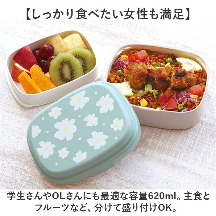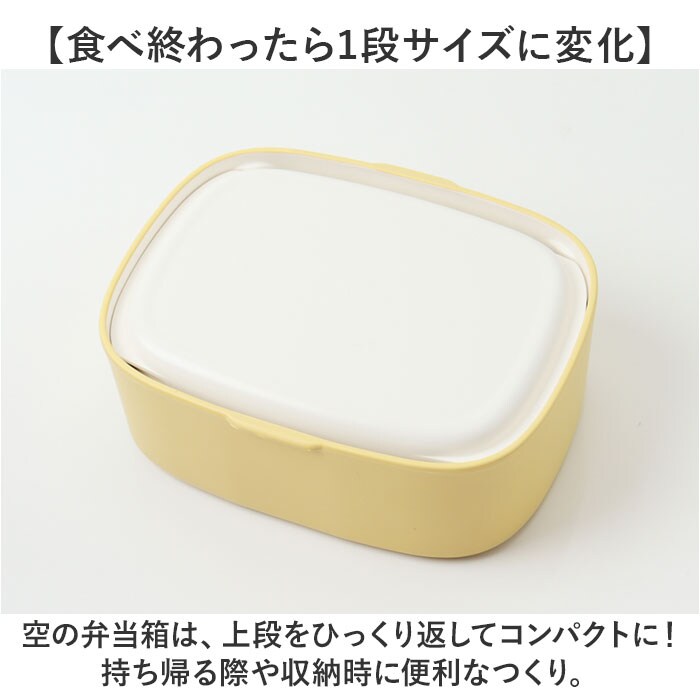 | 商品説明 | 【毎日のランチタイムのお供に】使い方を選べて、帰宅後のお手入れも簡単!デイリーに活躍する「2WAYランチボックス」。【1段でも2段でもお好みで使い分け】上段を外せば、1段式のお弁当箱として活用。食べる量に合わせてチェンジ☆【しっかり食べたい女性も満足】学生さんやOLさんにも最適な容量620ml。主食とフルーツなど、分けて盛り付けOK。【食べ終わったら1段サイズに変化】空の弁当箱は、上段をひっくり返してコンパクトに!持ち帰る際や収納時に便利なつくり。【ランチベルトいらずでスッキリ】フタを閉めて、カチッとロック。ランチベルトで留める必要がなく、開閉もスムーズ。【レンジ対応!熱々ごはんが復活】フタを外して電子レンジでの温めが可能。オフィスでも温かいランチを楽しめる!【お手入れしやすくデイリーに活躍】パーツが少なく、汚れが落ちやすい素材。フタは外せば食洗機対応で、忙しい毎日の味方。【自分用にもギフトにもおすすめ】ランチタイムが楽しみになる、ナチュラル可愛いデザイン。贈り物にもぴったりな日本製。 |