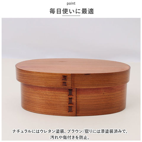 食洗器対応 曲げわっぱ弁当箱 S【ブラウン/摺り】