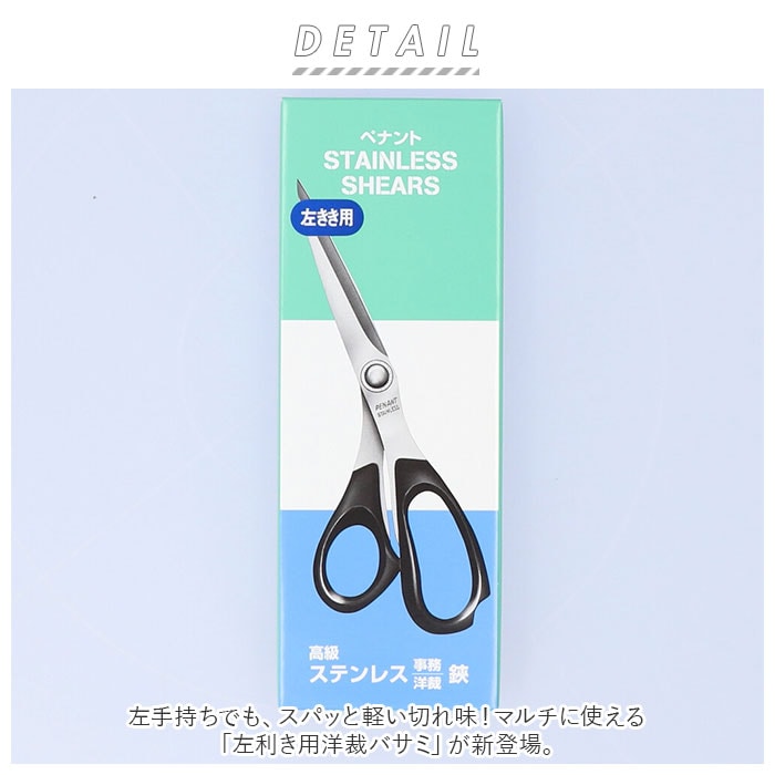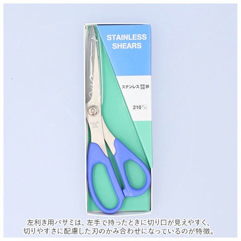 | 商品説明 | 左手持ちでも、スパッと軽い切れ味!マルチに使える「左利き用洋裁バサミ」が新登場。左利き用バサミは、左手で持ったときに切り口が見えやすく、切りやすさに配慮した刃のかみ合わせになっているのが特徴。上側のグリップに親指、下側グリップに人差し指から小指まで、4本の指が心地よく沿うようなグリップ形状を追求。ブレード材にはジャパンメイドの高級ステンレススチールを採用し、鋭い切れ味が持続。普段の繕いものにはもちろん、洋裁や手芸に使いやすいサイズ感。オフィスでの事務作業などにマルチに使えるのも嬉しいポイント!「自分の手にあったハサミが見つからない・・・。」利き手にあった使いやすいハサミを探されていた方にオススメ。 |