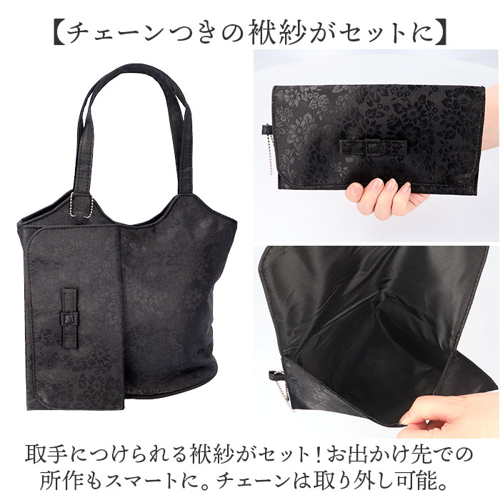 | 商品説明 | 【ころんとフォルムのフォーマル鞄】ふくさ付きだから、フォーマルシーンで大活躍!「袱紗付山型フォーマル手提げ」が登場。【可愛らしさをプラスしたデザイン】オールブラック仕様できっちりフォーマルだけど、ころんと丸いフォルムで女性らしさを表現♪【チェーンつきの袱紗がセットに】取手につけられる袱紗がセット!お出かけ先での所作もスマートに。チェーンは取り外し可能。【マチつきだから使いやすい】必要な荷物がしっかり入る、マチつきタイプ。コンパクトだけど必要な荷物をしっかり収納。【サブバッグとしてもGOOD】荷物が多いときのサブバッグとしても◎誰が持っても様になる、手提げタイプ。【ポケット仕様】メイン収納:オープンポケット×1、ファスナーポケット×1背面:ファスナーポケット×1 |