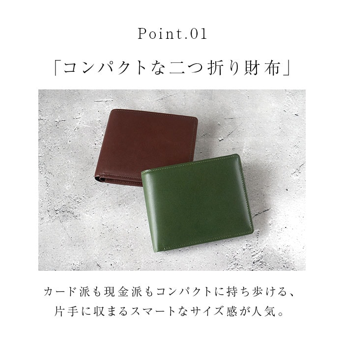 | 商品説明 | 【国産天然皮革で上質な仕上がり】日本を代表する国産革、栃木レザーを使用!「栃木レザージーンズ 二つ折り財布」。【味わいの増すこだわりの栃木レザー】少しツヤのあるフルベジタブルタンニングレザー。経年変化を楽しめて長く愛用できるアイテム。【コンパクトに見えて頼れる収納力】スマートに持ち歩ける二つ折り財布。収納スペースが多く、見た目以上の収納力が自慢!【仕分けしやすい2つのお札入れ】・2スペース仕様で、お札やレシートを分けて収納可能。タッチ決済に便利な隠しポケット付き。【取り出しやすいフラップ付小銭入れ】小銭入れはフラップポケットタイプ。程よく収まるマチ付きで、取り出しやすさがポイント。【増えがちなカード類もすっきり】収納時の厚みを抑えた、片マチ仕様のカードポケット。フリーポケットも3箇所に配置。【ビジネスやフォーマルシーンにも】美しい縫製が際立つシンプルな仕上がりでシーンを選ばない!手に馴染みやすく使い心地も抜群。【贈り物にもおすすめのアイテム】飽きが来ず、年代問わず長く使えるデザイン。豊富なカラーバリエーションも魅力。【ポケット仕様】内側:お札入れ×2(内側にカードポケット×1)、スナップボタン式小銭入れ×1、カードポケット×8、フリーポケット×3 |