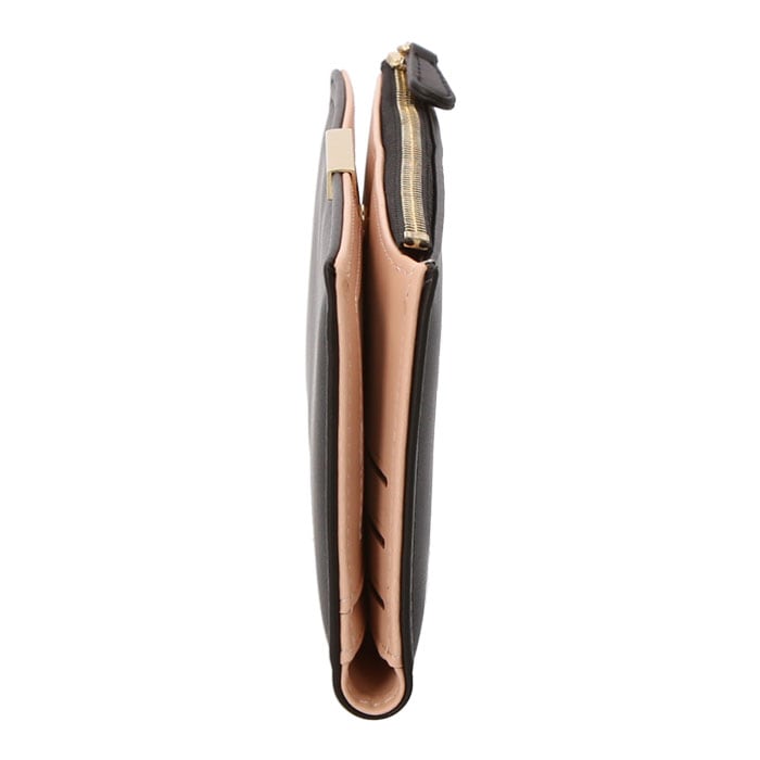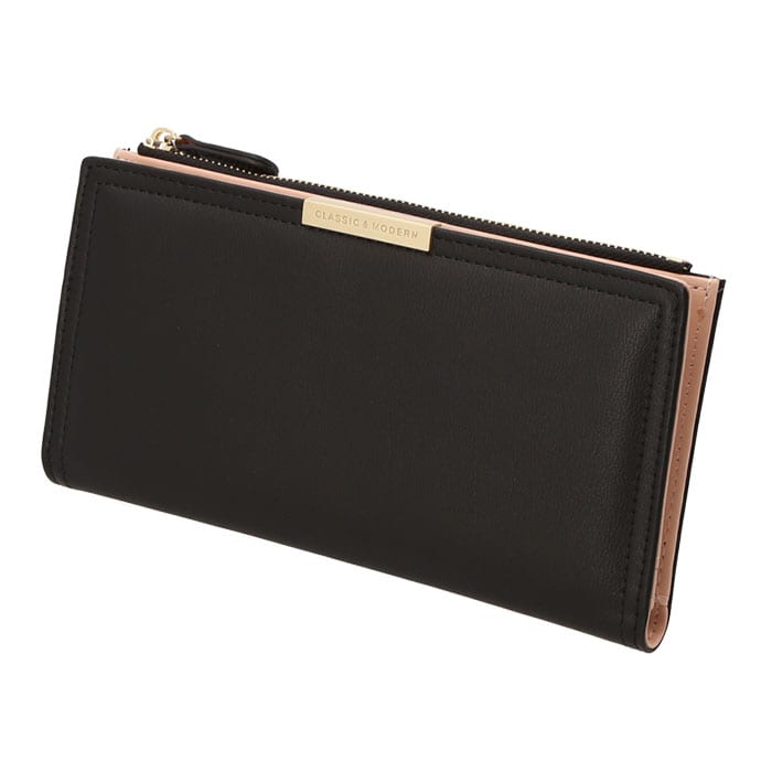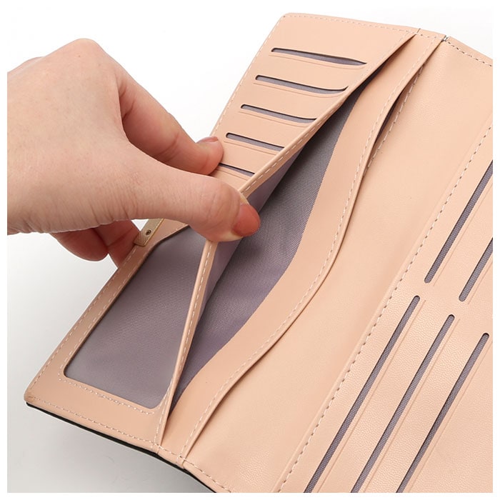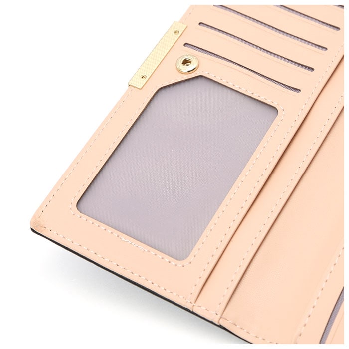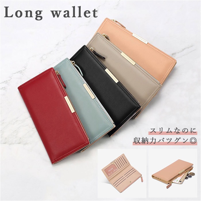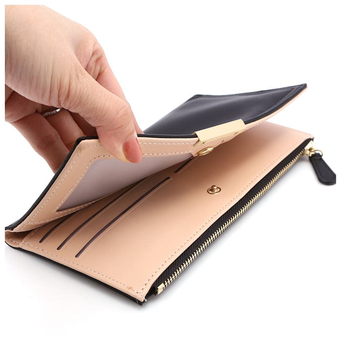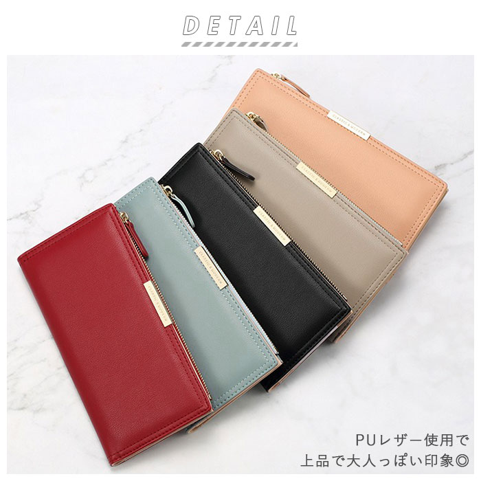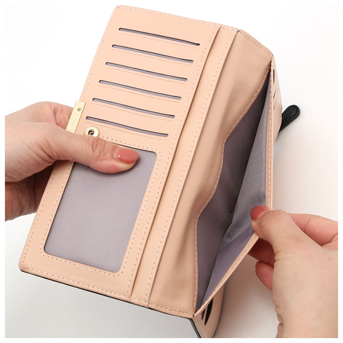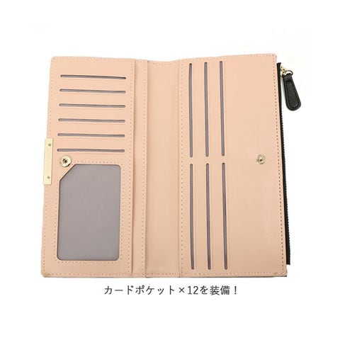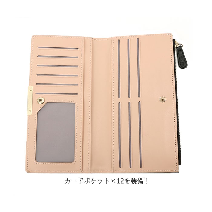 | 商品説明 | 薄型なのに収納力抜群!カードもたっぷり収納できる長財布が発売。パーティーバッグやショルダーバッグ、マチのないバッグにもスッと収まるスリムデザイン。内側には半透明ポケットを含むカードポケット×12を装備!さらにお札やチケットを収納できるフリーポケット×3付きで、見た目以上の収納力◎背面にはファスナータイプのコインケースを配置。PUレザーを使用し、上品で大人っぽい印象を演出。表面と内側のバイカラー仕様やゴールドの金具使いがアクセント♪ |