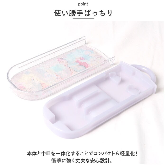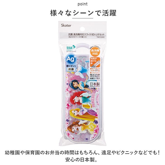 | 商品説明 | 人気キャラクターの絵柄がかわいい!食洗機対応のキッズ向けスプーン・フォーク・お箸のトリオセット。【開閉がスムーズ】ケースは指で引き出すスライド式で、お子さまでもラクラク開閉OK。【使い勝手ばっちり】本体と中皿を一体化することでコンパクト&軽量化!衝撃に強く丈夫な安心設計。【使い分けできるトリオセット】スプーンとフォークはお子さまが持ちやすい形状。お箸の先端には、食材をしっかり挟めて食べやすい滑り止め加工済み。【それぞれの収納場所を確保】ケース内部はスプーン・フォーク・お箸それぞれの形に区切られているので、簡単に収納が可能。【お手入れラクラク】ケースとフタは外して洗浄。全て食洗機対応で、忙しいママも笑顔☆【お友達とお揃いでも大丈夫】お箸には名前を記入できるスペース付き。ケース用のお名前シールも付属しており、お揃いで持っていても安心。【抗菌仕様で衛生的】抗菌効果のある銀イオンを練りこんだ素材を使用。いつも清潔をキープ。(※抗菌加工を施しておりますが、すべての細菌の増殖を抑制するものではありません。)【様々なシーンで活躍】幼稚園や保育園のお弁当の時間はもちろん、遠足やピクニックなどでも!安心の日本製。【お気に入りをチョイス】みんな大好きなキャラクターが大集合!お気に入りのキャラクターと一緒なら、ランチタイムがもっと楽しくなること間違いなし◎ |