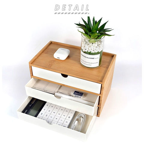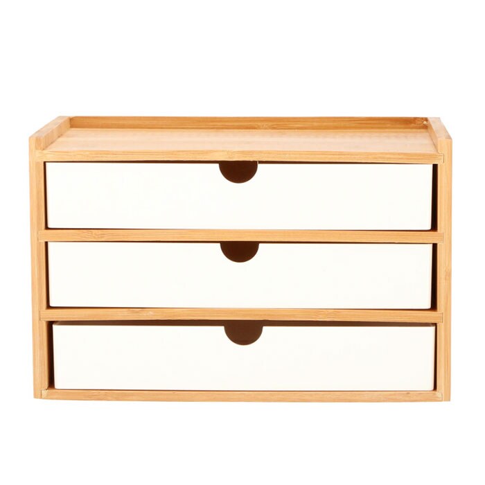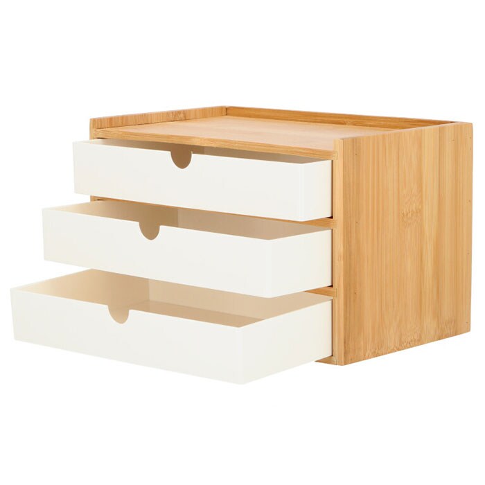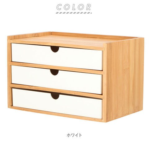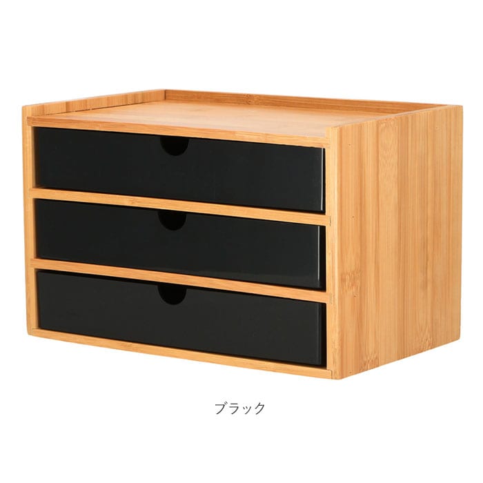 | 商品説明 | 小物の収納に便利な、卓上収納ボックス。ナチュラルな木目調の枠に、モノクロカラーの引き出しを組み合わせた、インテリアに馴染みやすいデザイン。小物入れにちょうど良い、3段引き出しタイプ。デスクに置いて文房具入れとして、ドレッサーに置いて化粧品入れなど、色んな場所で活躍! |