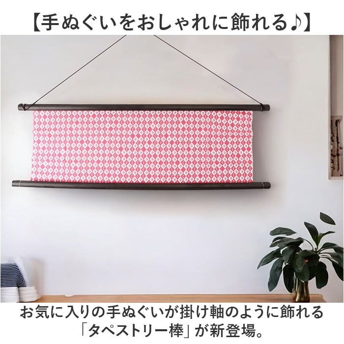 商品説明【手ぬぐいをおしゃれに飾れる♪】お気に入りの手ぬぐいが掛け軸のように飾れる「タペストリー棒」が新登場。【横柄用タイプ】横柄の手ぬぐい専用タイプ。手ぬぐいだけでなく、ファブリックやタオルなどを飾っても◎【取り付けも簡単】お手持ちの手ぬぐいを挟んで輪ゴムを巻くだけのカンタン装着!【気軽にイメージチェンジ】和風・洋風どちらのインテリアにも馴染み、季節やイベントに合わせて衣替えを楽しめる♪