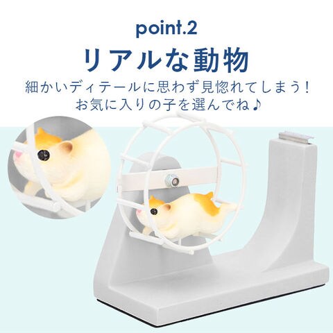 | 商品説明 | くるくる回るアニマルたちが可愛い♪「回し車モチーフのテープディスペンサー」が新登場。テープの回転部分にアニマルのフィギュアがデザインされた、個性が光る卓上型テープカッター。テープを引っ張ると、アニマルたちがくるくる回転!デスクに置いておくだけで、癒やされること間違いなし★華麗に回るゴリラとクマ、回し車で楽しく遊んでいるようなハムスター、ハリネズミ、リス。お気に入りの子を選んでね♪(※テープは付属しておりません。) |