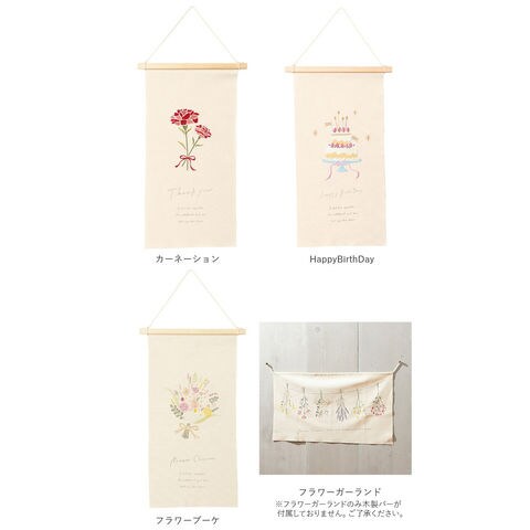 | 商品説明 | 空間にナチュラルな彩りをプラス。気軽に飾れる「刺繍タペストリー」Lサイズが新登場。【季節やイベントを楽しめるデザイン】季節の雰囲気やイベントを楽しむのにぴったり。アイボリーカラーの生地に繊細で可愛らしい刺繍を取り入れ、和室にも洋室にもマッチ◎【存在感のある仕上がり】大きめに作られたLサイズは、装飾のない壁が一気に華やかに!1枚飾るだけでおしゃれ空間に変身。【すぐに壁掛けOK】木製バーと壁掛け用の紐が付属しており、フックなどにサッと掛けて飾れる!シーズンオフ時は丸めてスリムに収納可能。【記念フォトのお供にも】飾って楽しむだけでなく、床に広げてお子さまの月齢フォトなどの背景としても活躍。【おうち時間をもっと豊かに】選ぶのが楽しくなるデザインを豊富にラインナップ。複数揃えて使い分ければ、年間通して違ったデザインを楽しめちゃう! |