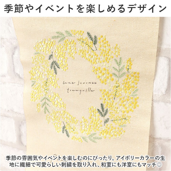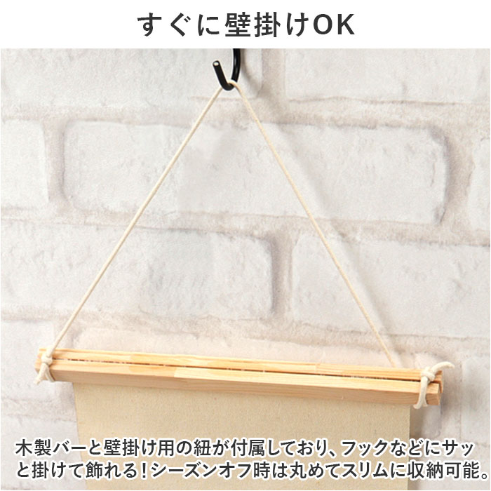 | 商品説明 | 空間にナチュラルな彩りをプラス。気軽に飾れる「刺繍タペストリー」Sサイズが新登場。【季節やイベントを楽しめるデザイン】季節の雰囲気やイベントを楽しむのにぴったり。アイボリーカラーの生地に繊細で可愛らしい刺繍を取り入れ、和室にも洋室にもマッチ◎【場所を選ばないサイズ感】コンパクトなSサイズは、リビングはもちろんトイレやちょっとした空間にも。飾る場所に困らず使えるのが嬉しい!【すぐに壁掛けOK】木製バーと壁掛け用の紐が付属しており、フックなどにサッと掛けて飾れる!シーズンオフ時は丸めてスリムに収納可能。【記念フォトのお供にも】飾って楽しむだけでなく、床に広げてお子さまの月齢フォトなどの背景としても活躍。【おうち時間をもっと豊かに】選ぶのが楽しくなるデザインを豊富にラインナップ。複数揃えて使い分ければ、年間通して違ったデザインを楽しめちゃう! |