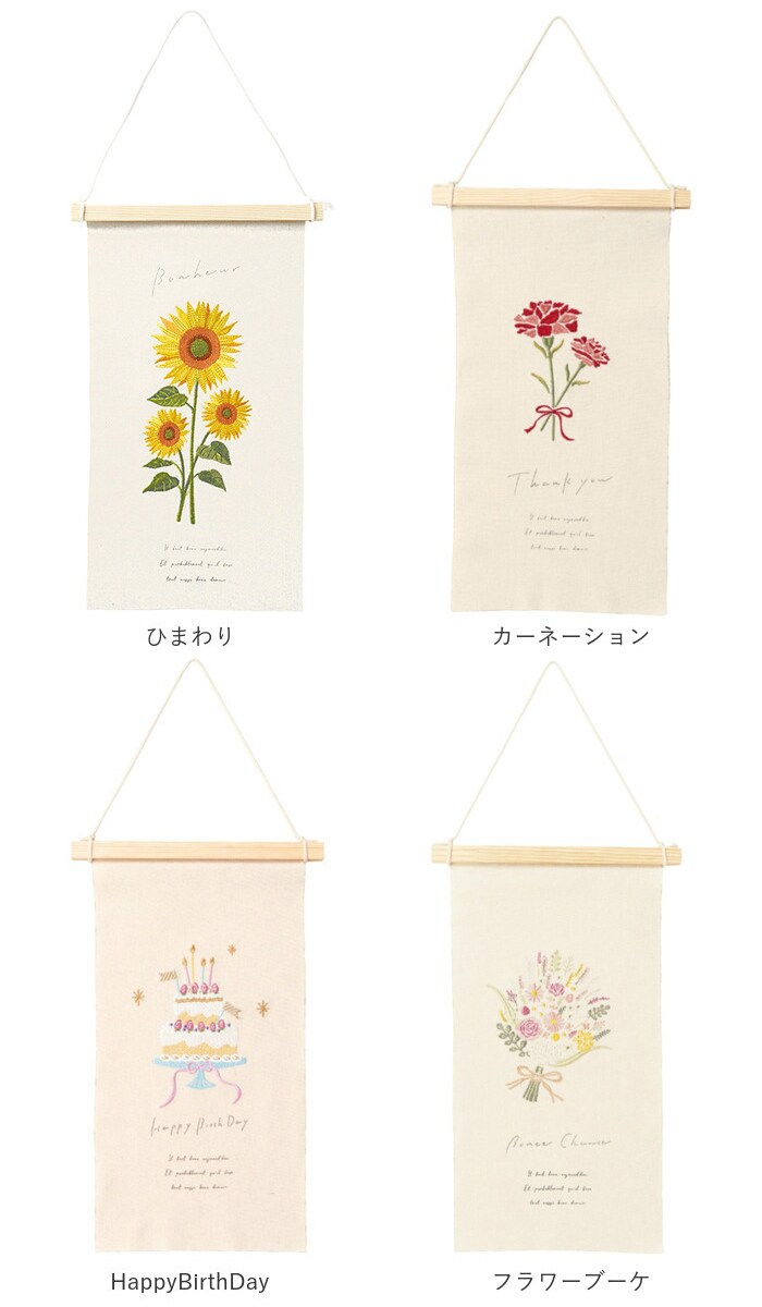 | サイズ | [縦]約39.5cm/[横]約23.5cm/[掛紐の長さ]約43cm 【カーネーション・HappyBirthDay・フラワーブーケ・ミモザリース】 [縦]約40.5cm/[横]約24.5cm/[掛紐の長さ]約46cm ※サイズは当店計測の実寸サイズです。実際の商品ならびにメーカー表記サイズとは多少の誤差が生じる場合がございます。あらかじめご了承ください。 |