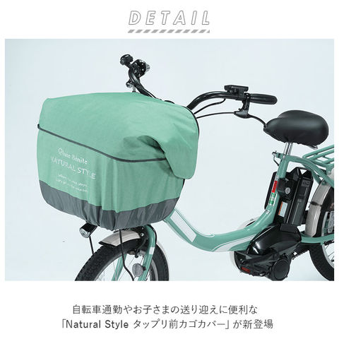 | 商品説明 | たっぷり収納できて、オシャレ!自転車通勤やお子さまの送り迎えに便利な「Natural Style タップリ前カゴカバー」が新登場。荷物が少ない時はすっきり、多い時にはたっぷり収納!カバーの上部が最大41cm拡張し、荷物に合わせてふんわり容量アップ!通常サイズで使用するときは、拡張部分を面ファスナーですっきり固定可能。電動アシスト車など、大きめの前カゴにも対応するワイドサイズ。(※カゴ対応サイズ・・・全周:約141cm × 高さ:約29cmまでの前カゴに取り付け可能。特殊なカゴには取り付けできない場合があります。)カバー生地には、水滴をしっかり弾く厚手のはっ水加工生地を採用。カバー天面裏側の面ファスナーテープをハンドルに引っかけると、天面が斜めになって水溜まりを防止。カバーの開口部は荷物の出し入れがスムーズにできるL字型&ダブルファスナー仕様。しっかりファスナーを閉じれば、ひったくり防止にも役立つ。(※ひったり抑止には効果がありますが、防犯上絶対ではありません。貴重品の管理はお客様ご自身で行ってください。)取付け方はとっても簡単!カバーをすっぽり被せたら、内部にある6本の取付紐でカゴに装着。最後にカゴ後部の面ファスナーを留めたら出来上がり!「Natural Style」のフロントロゴはキラリと光るリフレクター素材になっているので、夜間の走行でも安心。 |