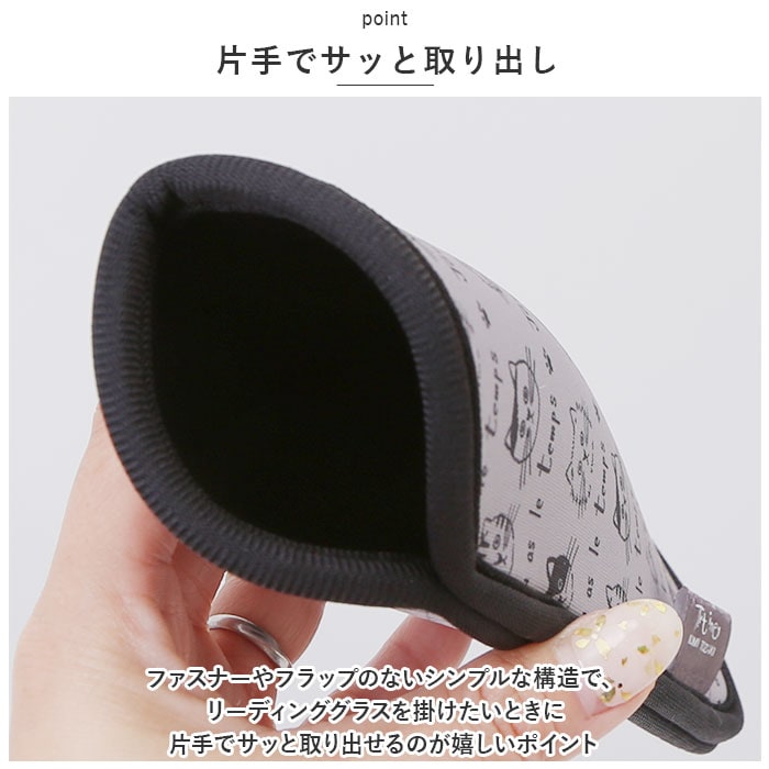 | 商品説明 | くりくりお目々でジッと見つめてくるネコちゃんにほっこり♪軽くてお洒落に持ち歩ける「Tartine -タルティーヌ- メガネ/ペンケース」が新登場。【Tartine オリジナルデザイン】・「タルティーヌ」は、人気作家の戸崎尚美さんが描いたネコのシャロンをフィーチャーした雑貨シリーズ。【ソフトな生地でメガネを保護】ケースの生地はウェットスーツにも使用される「ネオプレーンゴム」素材。そのソフトなクッション性でメガネをキズや衝撃から優しく保護。【スリム&コンパクト】ハンドバッグやショルダーバッグの中でもかさばらない!厚みを抑えたスリムなフォルムで、小ぶりサイズのメガネの収納に最適。【片手でサッと取り出し】ファスナーやフラップのないシンプルな構造で、リーディンググラスを掛けたいときに片手でサッと取り出せるのが嬉しいポイント。【使い方いろいろ】メガネケースとしてだけでなく、ミニ化粧水ボトルを入れてコスメポーチ、筆記用具をちょこんと挿してペンポーチなど、使い方はアイディア次第で無限大。【センスが際立つ大人カラー】お澄まし顔であどけないネコちゃんの表情と、落ち着いた大人シックなカラーリングで、メガネを取り出すたびに注目の的に♪ |