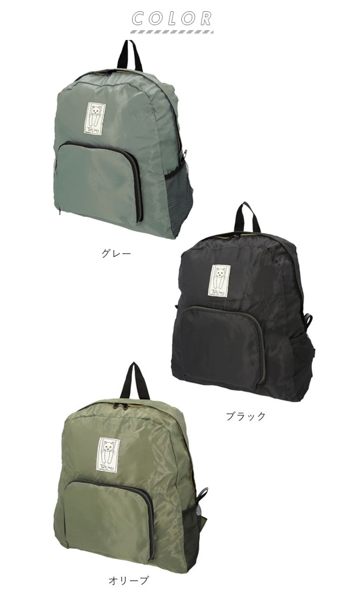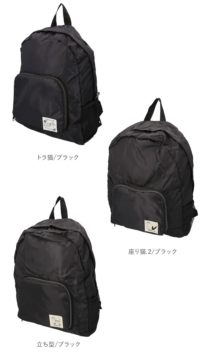 タルティーヌ 折りたたみリュック【座り猫.2/ブラック】