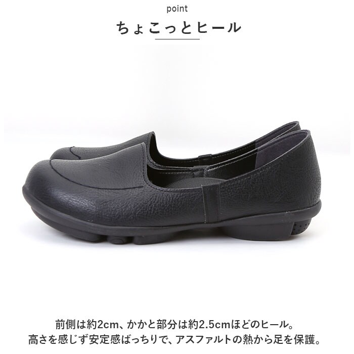 | 商品説明 | お出かけが楽しく、より快適に。Re:getA(リゲッタ)2ballスリッポンが新登場。【2ball-ツヴォル-】・「2つあって、まんまるくて柔らかい」がテーマ♪インソールとアウトソールに配置されたユニークなボールが、足の着地から蹴り出しまでをサポート!【安らぎのシンプルデザイン】つま先部分のステッチ&サイドのラインデザインがアクセント。シボ感のある生地を使用した、カジュアルに仕上げた日本製シューズ。【日本人の足に合わせた設計】ワイズが広めの木型を採用!少し反り上がったつま先はつまづき防止に。足に沿ってカーブし、窮屈感のないラウンドオーブリックトゥタイプ。(※ワイズとは、足の親指の付け根から小指の付け根までの周囲のこと。)【こだわりが詰まったインソール】足裏の凹凸に絶妙にフィット!足裏全体を使って支え、歩行時の負担を軽減するつくり。歩きながら筋肉のコリをほぐしてくれる、指圧ボール付き。【滑りにくく、水に強い!】インソールは耐摩耗性に優れ、抗菌防臭素材を練り込んだゴム素材。滑りにくく、取り外して水洗いもOKだからいつも清潔。【機能的なアウトソール】屈曲性があり、つま先に力を入れるだけで踵が持ち上がる、ローリングカットソール。クッション性のあるサポートボールが蹴り出しを応援&着地の衝撃を吸収。【ちょこっとヒール】前側は約2cm、かかと部分は約2.5cmほどのヒール。高さを感じず安定感ばっちりで、アスファルトの熱から足を保護。【スイスイ歩ける!】軽量で長時間履いても疲れにくい!足に馴染む柔らかな素材で、かかとを踏んでも歩くことが可能。【脱ぎ履きラクラク】履き口がゆったりしているので、スポッと履ける!急いでいるときも慌てることなく、靴を脱ぐシーンでも手間取らない♪ |