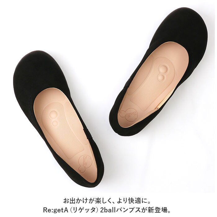 | 商品説明 | お出かけが楽しく、より快適に。Re:getA(リゲッタ)2ballパンプスが新登場。【2ball-ツヴォル-】・「2つあって、まんまるくて柔らかい」がテーマ♪インソールとアウトソールに配置されたユニークなボールが、足の着地から蹴り出しまでをサポート!【安らぎのシンプルデザイン】はっ水&防汚効果のあるスエード調の素材を使用した日本製シューズ。履き口のさりげないステッチがワンポイントに。【日本人の足に合わせた設計】ワイズが広めの木型を採用!少し反り上がったつま先はつまづき防止に。足に沿ってカーブし、窮屈感のないラウンドオーブリックトゥタイプ。(※ワイズとは、足の親指の付け根から小指の付け根までの周囲のこと。)【こだわりが詰まったインソール】足裏の凹凸に絶妙にフィット!足裏全体を使って支え、歩行時の負担を軽減するつくり。歩きながら筋肉のコリをほぐしてくれる、指圧ボール付き。【滑りにくく、水に強い!】インソールは耐摩耗性に優れ、抗菌防臭素材を練り込んだゴム素材。滑りにくく、取り外して水洗いもOKだからいつも清潔。【機能的なアウトソール】屈曲性があり、つま先に力を入れるだけで踵が持ち上がる、ローリングカットソール。クッション性のあるサポートボールが蹴り出しを応援&着地の衝撃を吸収。【ちょこっとヒール】前側は約2cm、かかと部分は約2.5cmほどのヒール。高さを感じず安定感ばっちりで、アスファルトの熱から足を保護。【スイスイ歩ける!】軽量で長時間履いても疲れにくい!内側には足当たりの良い柔らかな素材を使い、かかと抜け防止のクッション付き。 |