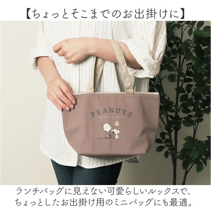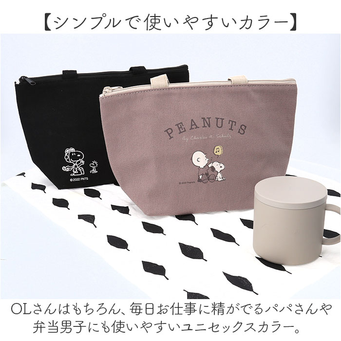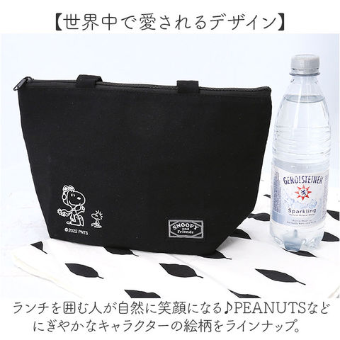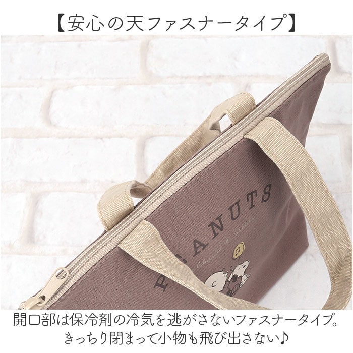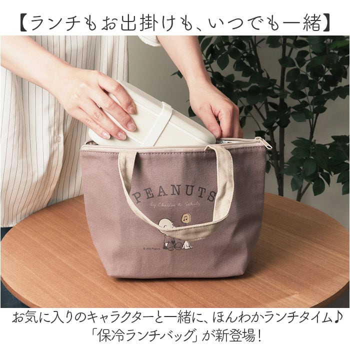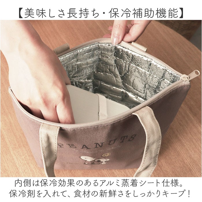 商品説明【ランチもお出掛けも、いつでも一緒】お気に入りのキャラクターと一緒に、ほんわかランチタイム♪「保冷ランチバッグ」が新登場!【手に優しく馴染むコットン素材】素朴なコットンキャンバスに、大人気キャラの刺繍orプリントをあしらったほのぼのデザイン。【お弁当箱もドリンクもすっぽり】小ぶりに見えてマチ幅たっぷり。お弁当箱は平置きに、ドリンクボトルも横向きに収納可能。【美味しさ長持ち・保冷補助機能】内側は保冷効果のあるアルミ蒸着シート仕様。保冷剤を入れて、食材の新鮮さをしっかりキープ!【安心の天ファスナータイプ】開口部は保冷剤の冷気を逃がさないファスナータイプ。きっちり閉まって小物も飛び出さない♪【ちょっとそこまでのお出掛けに】ランチバッグに見えない可愛らしいルックスで、ちょっとしたお出掛け用のミニバッグにも最適。【シンプルで使いやすいカラー】OLさんはもちろん、毎日お仕事に精がでるパパさんや弁当男子にも使いやすいユニセックスカラー。【世界中で愛されるデザイン】ランチを囲む人が自然に笑顔になる♪PEANUTSなどにぎやかなキャラクターの絵柄をラインナップ。