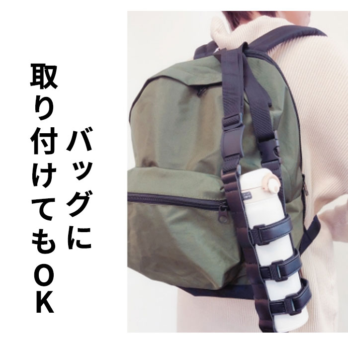 | 商品説明 | 水筒やペットボトルを肩から下げられて持ち運びに便利な、肩掛けボトルホルダーが登場!ボトル装着部分には合成皮革を使用した4本の固定テープを採用。耐久性があり、キズにも強い!4本の固定テープは取り外しができるので、色々なサイズのボトルを装着できる。(※1リットルの水筒には固定テープを4本使用、500mlのペットボトルには固定テープを3本使用など、ボトルのサイズに合わせて固定テープの本数を調整できます。)ショルダーは長さを変えられるので、お子様の身長に合わせて調整することが可能◎ショルダーにはネームプレート付き。付属のお名前シールを貼れば、お友達の物と間違える心配もなし。通学時はもちろん、遠足やアウトドア時などにも活躍♪シンプルなデザインなので、大人も使えるアイテム。 |
