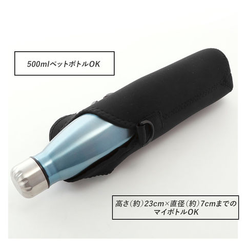 | 注意点 | 火気のそばや湿気の多い場所、直射日光が当たる場所での使用はおやめください。ゴム素材の特性上、使い始めの際はゴムの臭いがございます。あらかじめご了承ください。時間の経過とともに臭いは軽減されますが、臭いが気になる場合は風通しの良い場所で空気にさらすことで改善されることがございます。大きすぎるものを入れるとゴムが伸び切り、切れ目が生じて破損する恐れがあります。ご注意ください。付属のストラップ使用時は、ボトルが他のものに挟まれて引っ張られると大変危険です。十分ご注意ください。縫製品の特性上、多少のサイズ誤差や凹み等が生じている場合があります。あらかじめご了承ください。摩擦・水濡れ・汗等により色落ちや色移りすることがあります。本製品は内面、外面共に防水仕様ではありません。冷たい飲み物を長時間入れておくと、温度差による結露により、水滴がしみ出す場合があります。使用後は直射日光を避けて風通しのよい場所で乾燥させてください。色落ちの恐れがありますので、洗剤類を使用した洗濯はお避け下さい。汚れを落とす場合は布等に水を含ませて固くしぼり、軽くたたくように汚れを落としてください。カメラやモニターの性質により、画像と実物の色の違いがある場合がございますのでご理解願います。 |