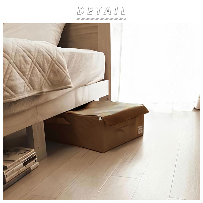 | 商品説明 | インテリアに馴染む収納グッズが人気の「ESTRARIA(ストレリアナチュレ)」から、「アンダーベッド ベッド下収納ボックス」が新登場!ベッド下の隙間スペースがお洒落に有効活用できる、可愛らしさと実用性を兼ね備えた薄型収納ボックス。幅:約39cm×奥行:約60cmの大容量で、いつのまにか増えてしまう衣類やコミック等の小物がスッキリ収納できちゃう♪組み立て方はとっても簡単!折りたたまれたボックスを広げてから底板をセットし、サイドのファスナーを閉めればすぐに使えるのが嬉しいポイント。両側とフロントに取っ手ハンドル付きなので、縦横どちらの方向にセットしてもベッド下から引き出しやすく、持ち運びもラクちん。フロントのフタの面ファスナーと、両サイドのファスナーでホコリの侵入もシャットアウト!手触りのよい綿ポリエステル混紡のファブリック生地を採用し、ナチュラルなカラーが寝室のインテリアを彩る、優しいデザインも魅力。 |