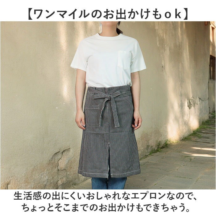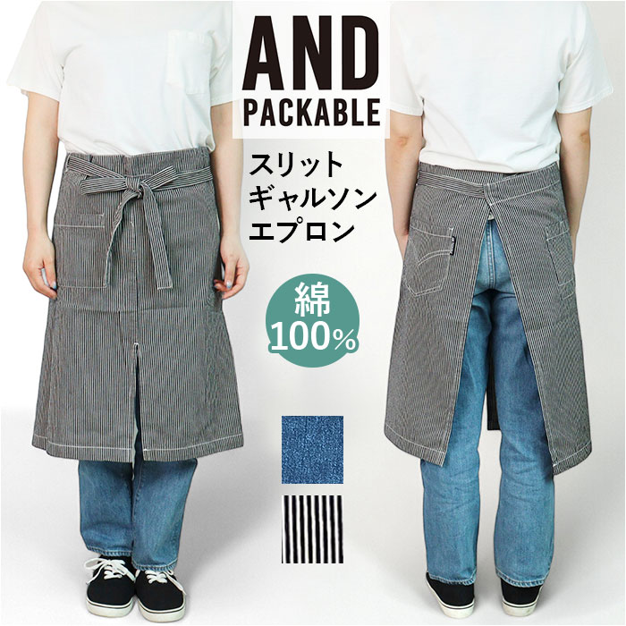 AND PACKABLE デニムギャルソンエプロン【ヒッコリー102】