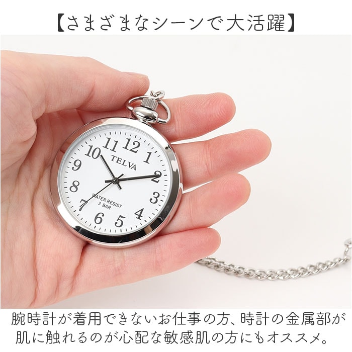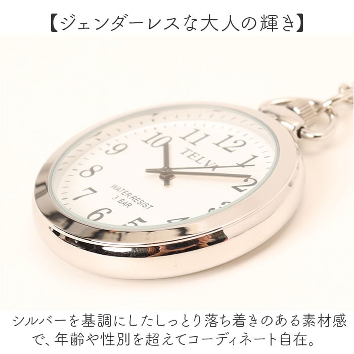 TELVA テルバ 懐中時計 クオーツ ポケットウォッチ【シルバー】