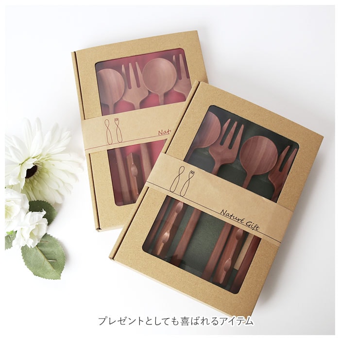 商品説明温かさを感じる木製食器♪ナチュレギフトペアセットが発売。丁寧な手作業で作り上げられた洗練したフォルムが魅力的。天然木で作られておりとっても軽量。さらにハンドルが持ちやすく手に馴染みやすいデザイン。お子様から大人まで、誰にでも使いやすい♪フォークの先端とスプーンのフチは柔らかく面が取られており口当たりも滑らか。熱伝導が少なく、唇に熱くない使いやすいつくり。ウレタン塗装を表面に施し耐水性・耐久性に優れ、長く使用できるのも嬉しいポイント。レスト付きだから、プレゼントとしても喜ばれるアイテム。日常の食卓用はもちろん、持ち運びしやすいからアウトドアグッズとしても◎