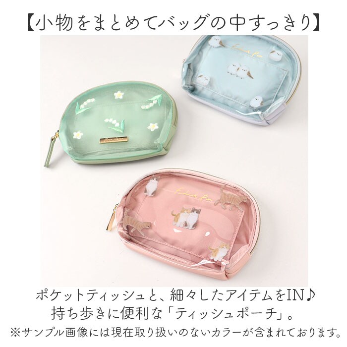 | 商品説明 | 【小物をまとめてバッグの中すっきり】ポケットティッシュと、細々したアイテムをIN♪持ち歩きに便利な「「ティッシュポーチ」。【デイリー使いにぴったりサイズ】使い勝手の良い、コンパクトでスリムなフォルム。サッと持ち出せるのが嬉しい♪【ティッシュをサッと取り出しOK】背面ポケットにティッシュを入れて、スリットから取り出せるつくり。外出先でも慌てない◎【開閉スムーズ、安心のファスナー式】ガバっと開いて取り出しやすく、ファスナーを閉じれば中身の飛び出しもガード。【マルチに使える万能アイテム】リップなどのコスメ、イヤホンやアクセサリーを入れてもOK。1つの内ポケット付き。【キュートなナチュラルデザイン】生地感やモチーフの違うバリエーション。ちょっとしたギフトにもおすすめ。【ポケット仕様】内側:オープンポケット×1 |