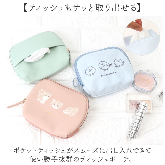 | 商品説明 | 【ティッシュもサッと取り出せる】ポケットティッシュがスムーズに出し入れできて使い勝手抜群のティッシュポーチ。【コンパクトで持ち運び便利】手のひらサイズの軽量設計でバッグの中でもかさばらない〇【細々した小物もまとめて収納】ゴムバンドとオープンポケット付きでリップや小物もすっきり。【おしゃれで可愛いデザイン】ミミムーとモフットの愛らしいシリーズでお出かけが楽しくなる♪【プレゼントにも最適】ギフトにぴったりなサイズ感で友達や家族への贈り物としても人気。 |