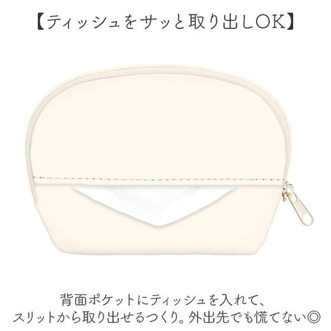 | 商品説明 | 【小物をまとめてバッグの中すっきり】ポケットティッシュと、細々したアイテムをIN♪持ち歩きに便利な「ティッシュポーチ」。【デイリー使いにぴったりサイズ】使い勝手の良い、コンパクトでスリムなフォルム。サッと持ち出せるのが嬉しい♪【ティッシュをサッと取り出しOK】背面ポケットにティッシュを入れて、スリットから取り出せるつくり。外出先でも慌てない◎【開閉スムーズ、安心のファスナー式】ガバっと開いて取り出しやすく、ファスナーを閉じれば中身の飛び出しもガード。【マルチに使える万能アイテム】リップなどのコスメ、イヤホンやアクセサリーを入れてもOK。ポケット&ゴムホルダー付き。【キュートなナチュラルデザイン】質感やモチーフの違うバリエーション。ちょっとしたギフトにもおすすめ。【ポケット仕様】内側:オープンポケット×1、ゴムホルダー×4 |