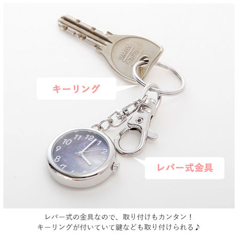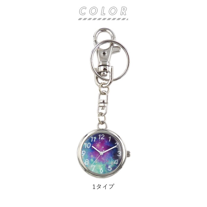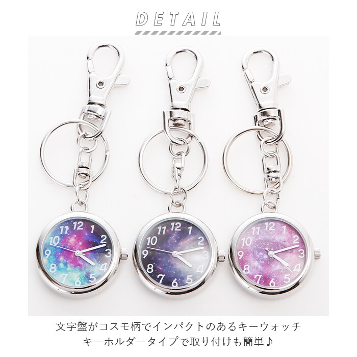 | 商品説明 | バッグのチャームにもなる、キーホルダーウォッチ。文字盤がコスモ柄!おしゃれなので、アクセサリー感覚でバッグや洋服にもつけられる♪数字や針がホワイトなので、時間がはっきり見やすい!カバンにつけたまま時間の確認が可能なので、お出かけ先でも便利!レバー式の金具なので、取り付けもカンタン!キーリングが付いているので、鍵なども取り付けられて便利。プレゼントにもおすすめ♪ |