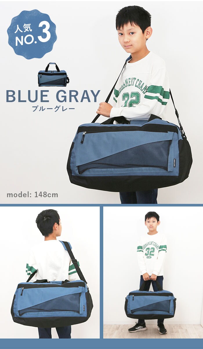 | 商品説明 | 三角形のメッシュで中身が見えるフロントポケットが印象的!TIGER LABEL(タイガーラベル)の大容量ボストンバッグ。メイン収納の横幅約54cmとたっぷりサイズ。お子様の修学旅行用バッグとしてはもちろん、部活やスポーツイベント用のバッグとしても活躍する大容量43リットル!フロントのファスナーポケットは、メッシュ生地の三角窓が付いたユニークなデザイン。通気性がよいため、スポーツ後のタオルや水滴のついたペットボトルもIN出来る。メイン収納開口部はダブルファスナー式で大きく開いて、小物や衣類の出し入れが楽ちん。旅行用の衣類もたっぷり入って収納力抜群。メイン収納スペース内側に、スマートフォンや二つ折り財布がジャストに収まる便利なオープンポケット付き。底マチはたっぷり24cm。スポーツシューズも余裕で収まる大容量なので、お子様の部活用ボストンやフィットネスジム用のボストンに最適!持ち手は、マジックテープ式のハンドルグリップでまとめることが可能!荷物が重くなった時もハンドルが指に食い込まず、持ちやすい。取り外し可能なショルダーベルトで肩掛けスタイルにも対応。肩パット付きで、たくさんの荷物も肩に負担を掛けずにラクラク持ち運び♪ |