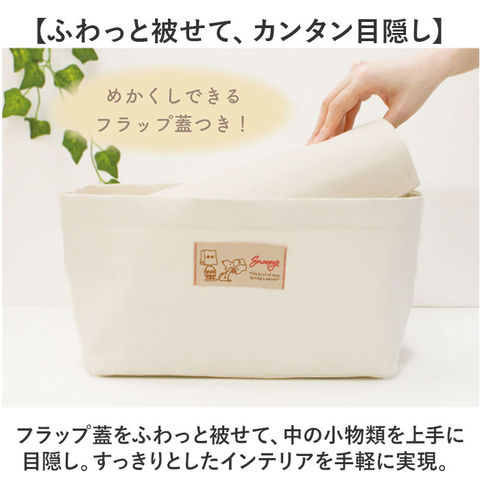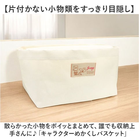 | 商品説明 | 【片付かない小物類をすっきり目隠し】散らかった小物をポイッとまとめて、誰でも収納上手さんに♪「キャラクターめかくしバスケット」【くったり柔らかなキャンバス素材】ざっくりとした風合いのキャンバス生地を立体的な舟形フォルムに仕上げたシンプルなバスケット。【大きく広がる間口でパッとしまえる】舟形の開口部は間口が広く、テーブルに広げた雑多な小物類もざっくばらんにスムーズに収納可能。【ふわっと被せて、カンタン目隠し】フラップ蓋をふわっと被せて、中の小物類を上手に目隠し。すっきりとしたインテリアを手軽に実現。【水滴や汚れもサッとひと拭き】バスケット内側にはっ水加工コーティング加工済みなので、汚れもサッとひと拭きで簡単キレイ。※完全防水仕様ではありません。長時間濡れたままにしておくと、水が染みこむことがございます。【隙間スペースにおけるスリムな形】マチ幅約16cmのスリムな設計で、収納キャビネットや本棚に場所をとらずに収納できて便利!【毎日の小物の整理がグッと楽に】リビングのテーブルに何気なく置いてしまいがちなTVのリモコン、文庫本などの小物整理に大活躍!【衣類やタオルの収納にもオススメ】お子さまが明日の学校に着ていく衣類用バスケットや、サニタリールームのタオルバスケットにも♪【世界中で愛されるデザイン】紙袋をかぶって遊ぶスヌーピーたちや、帽子を目深に被ったオラフ・・・。可愛らしいキャラクターたちの刺繍をあしらったフロントのロゴネームがワンポイント。 |