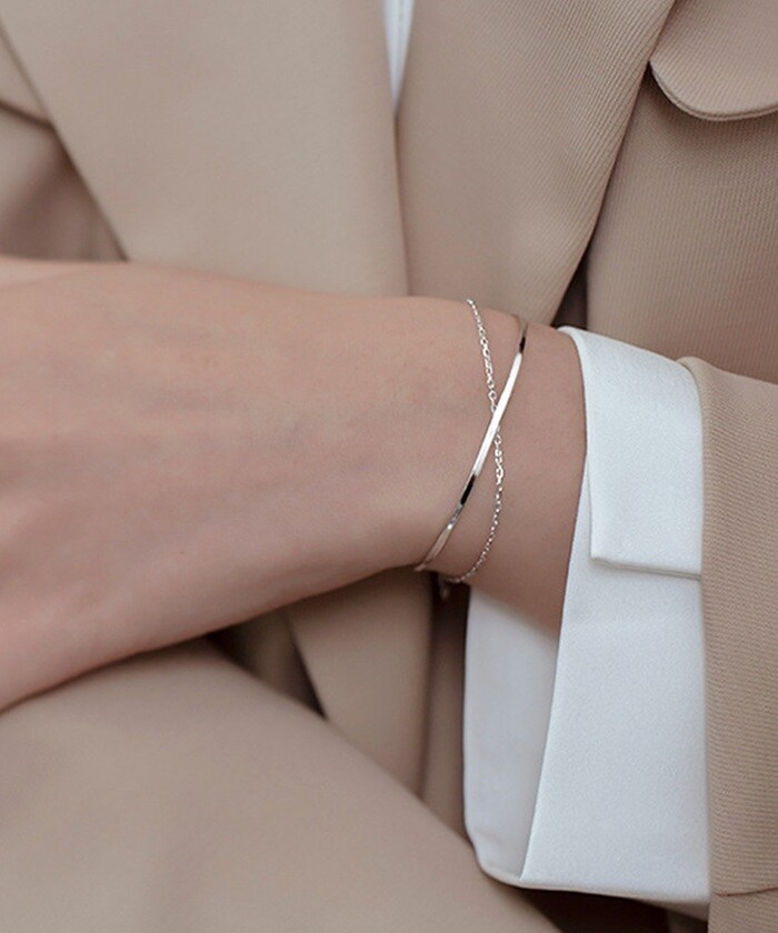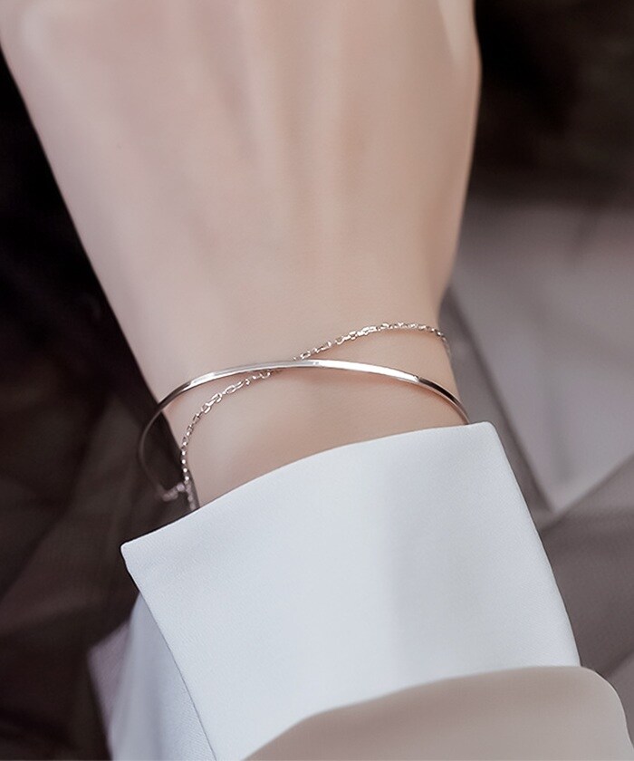 メタルライン&チェーン2連ブレスレット【シルバー】