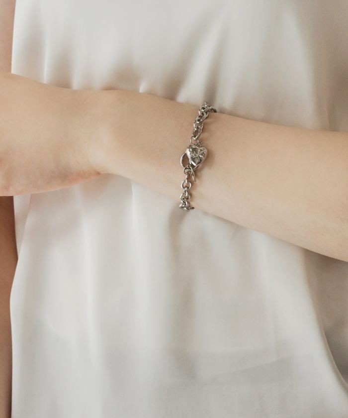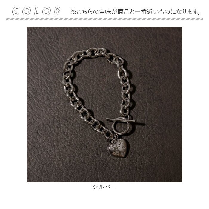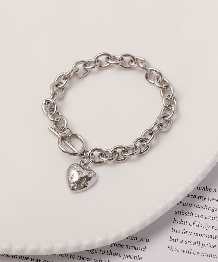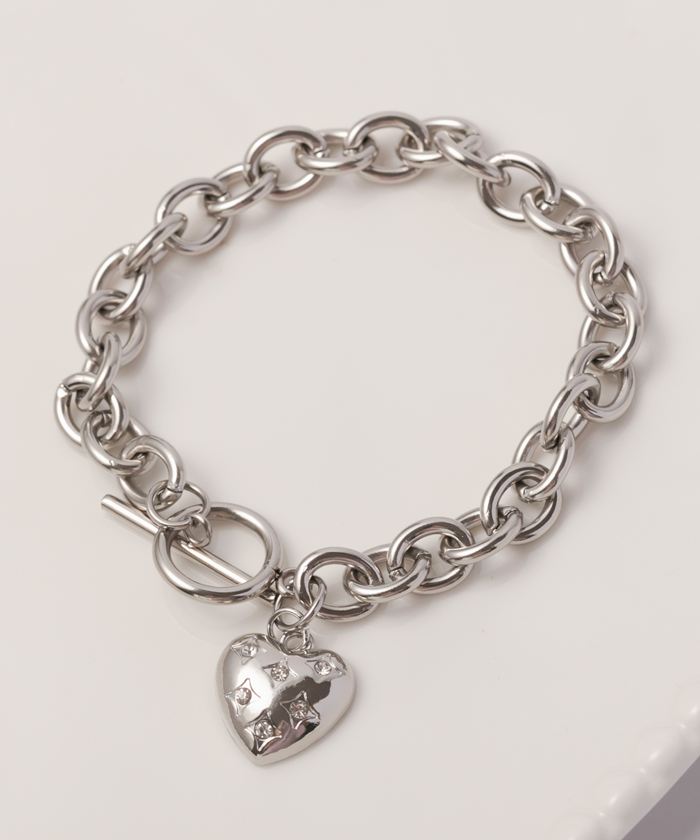 ビジューハートチャームマンテルチェーンブレスレット【シルバー】【Mサイズ】