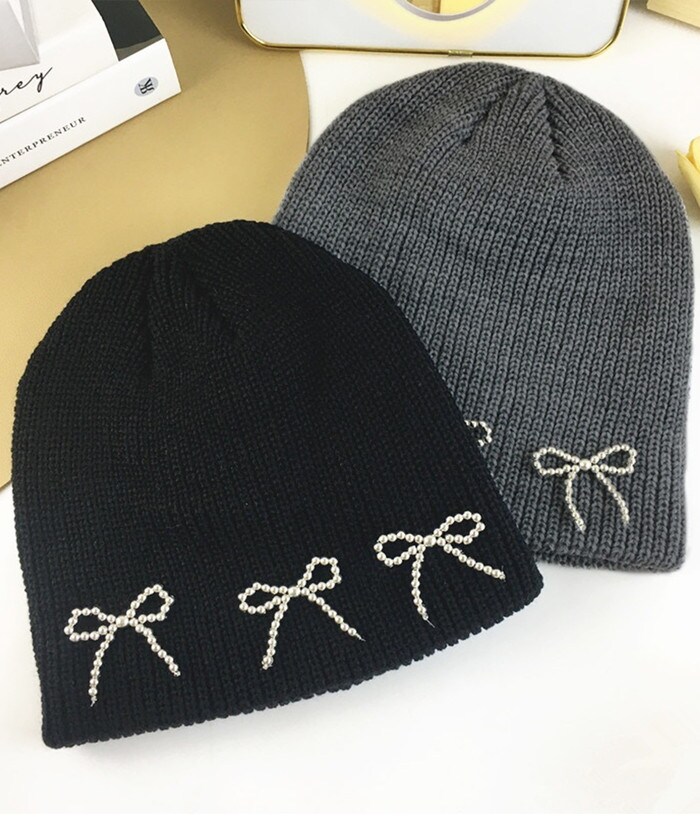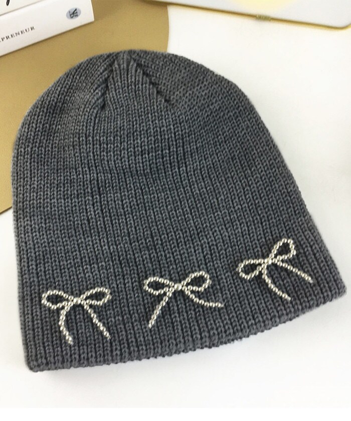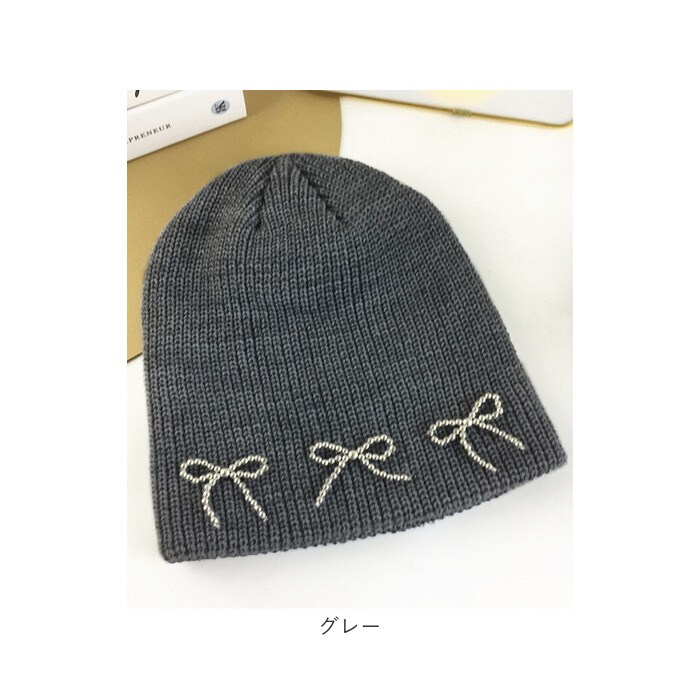 ビーズリボンニットビーニー【グレー】