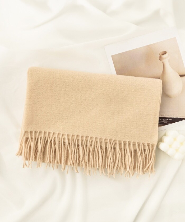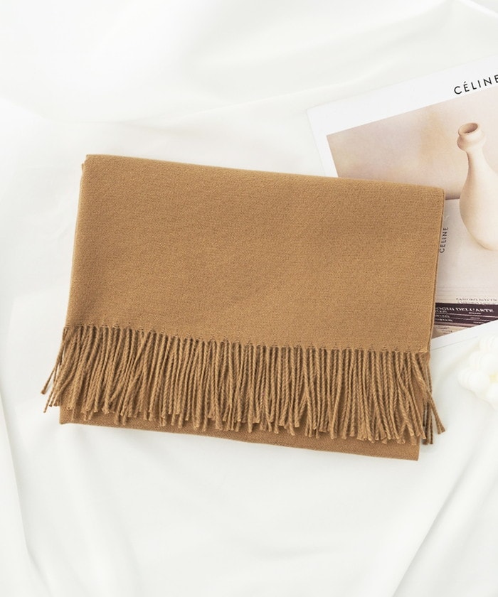 カシミヤタッチフリンジマフラー【キャメル】