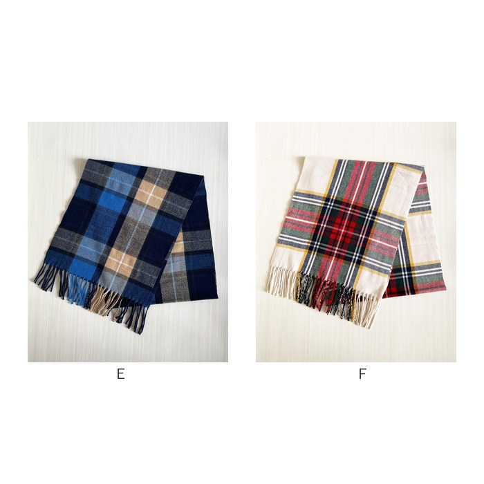 カシミヤタッチチェックマフラー【E】