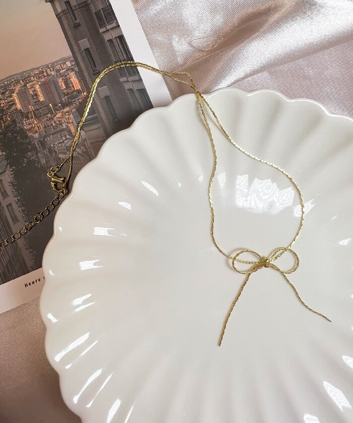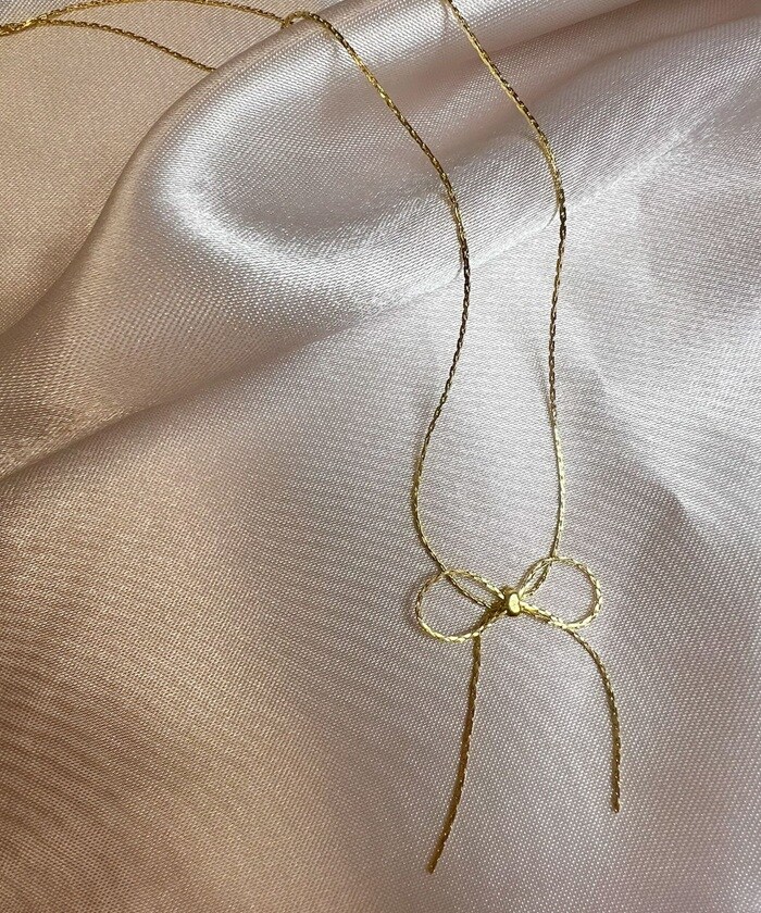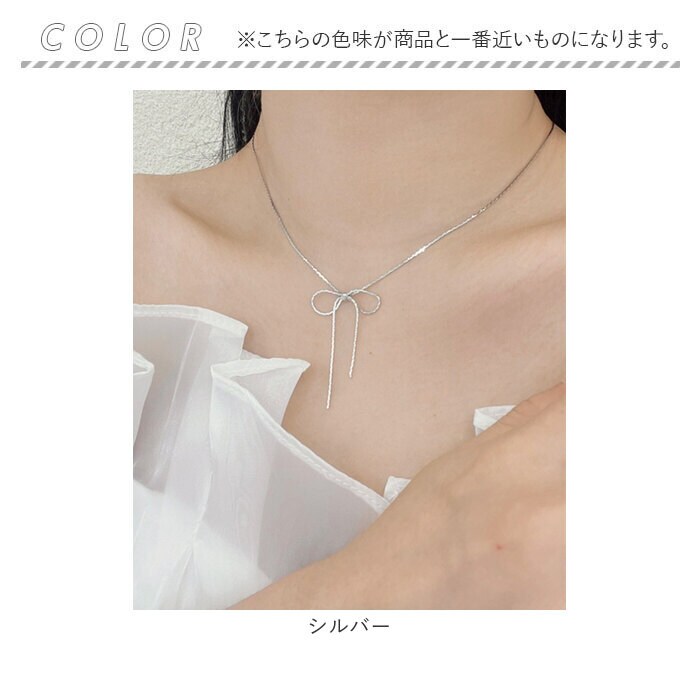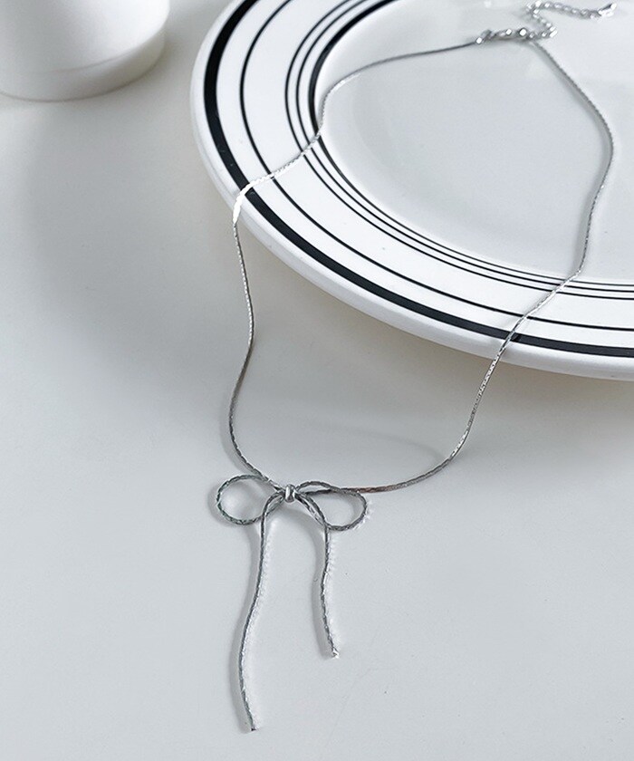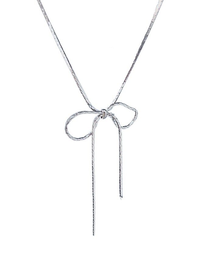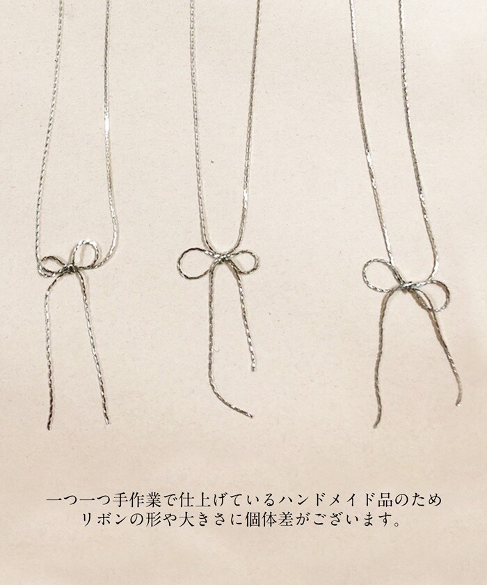 | 商品説明 | 細く繊細なチェーンにシンプルなシルバーのリボンが大人可愛いネックレス。シンプルなデザインながらも存在感がありいつものスタイルを華やかにしてくれるアイテム。 |