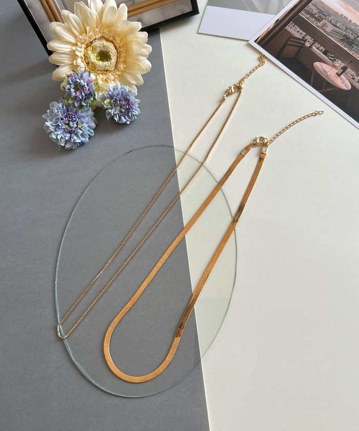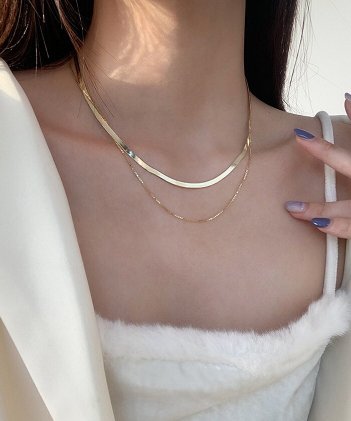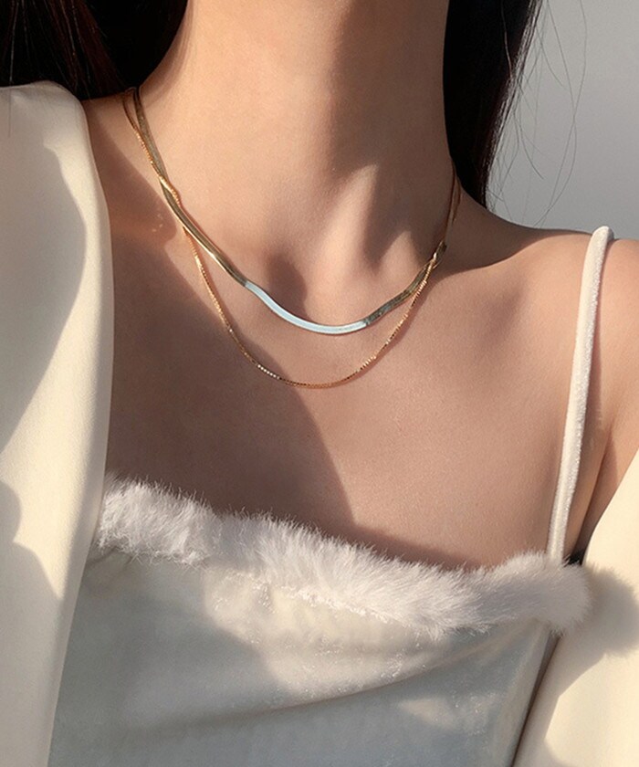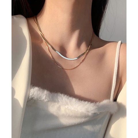 | 商品説明 | シンプルなデザインでどんな服装にも合わせやすいダブルレイヤーネックレス。付けるだけでこなれ感をプラス。カジュアルにはもちろん、綺麗めのニットやワンピースに合わせれば、凛とした大人のスタイルに。 |