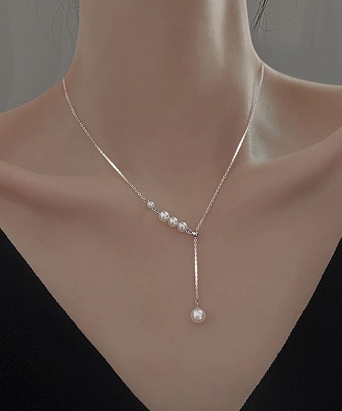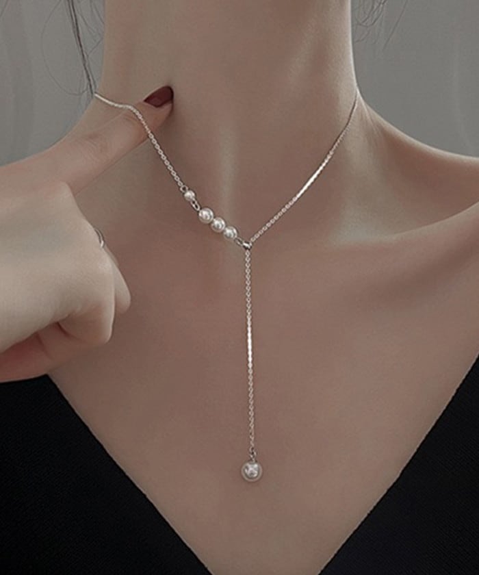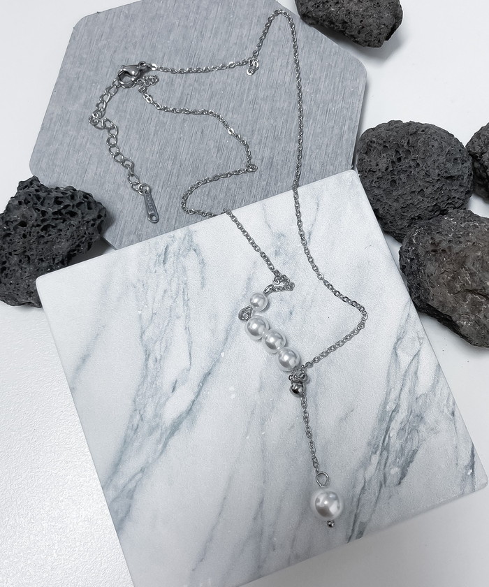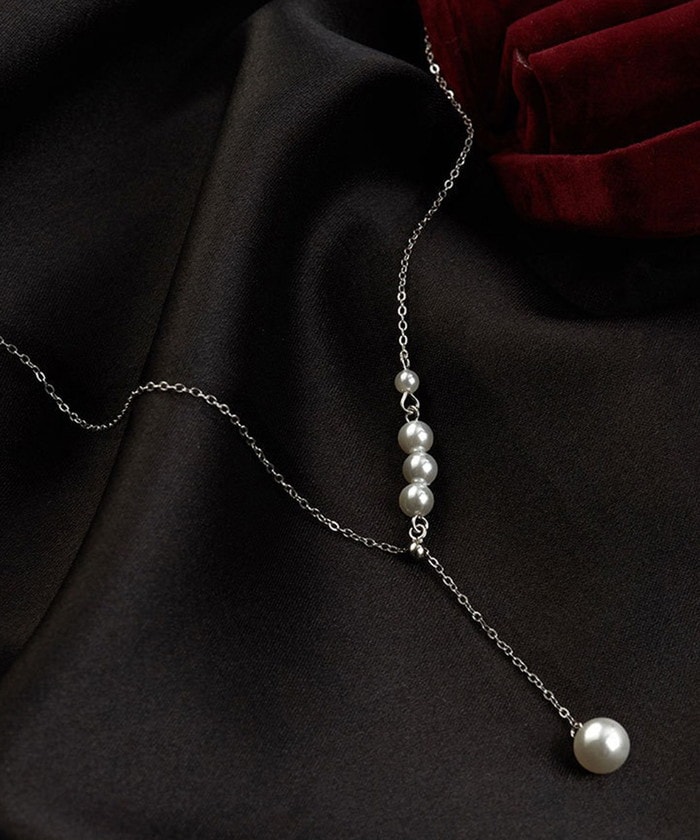 Y字パールネックレス【シルバー】