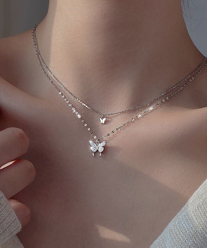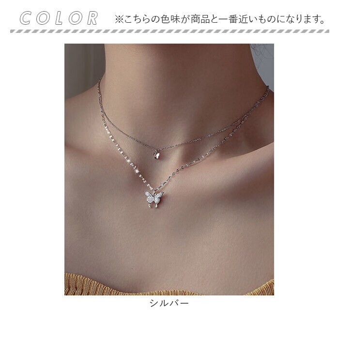 | 商品説明 | きらきらの2匹の蝶が胸元を華やかに舞うネックレス。女性らしい可憐なデザインでコーデにポイントをプラス。デイリーにもフォーマルな席にもシーンを選ばず使えるデザイン。 |