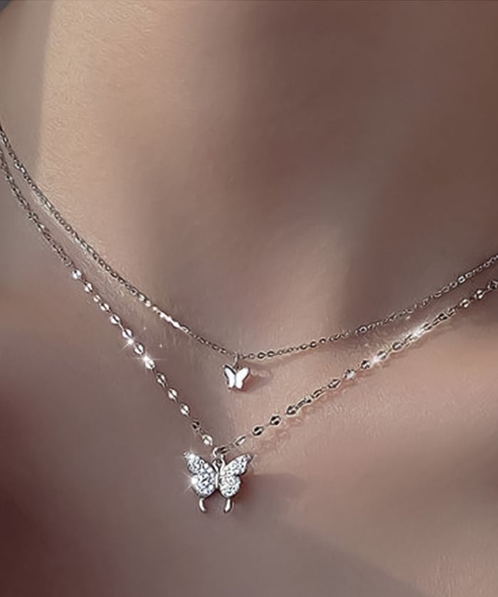 バタフライツインズネックレス【シルバー】