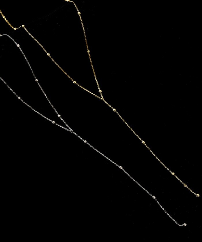 | 商品説明 | 華奢なチェーンにメタリックボールあしらったデザイン。シンプルなYラインですっきりした胸元を演出。※生産時期によりペンダントトップ部分に多少の個体差がございます。ご了承ください。 |