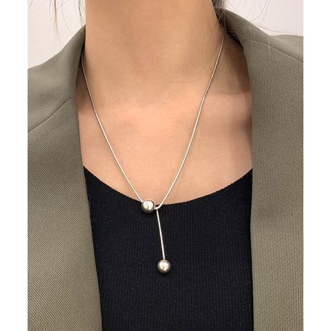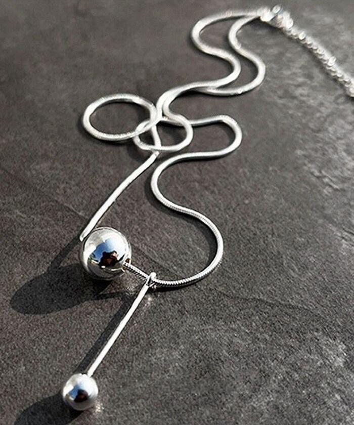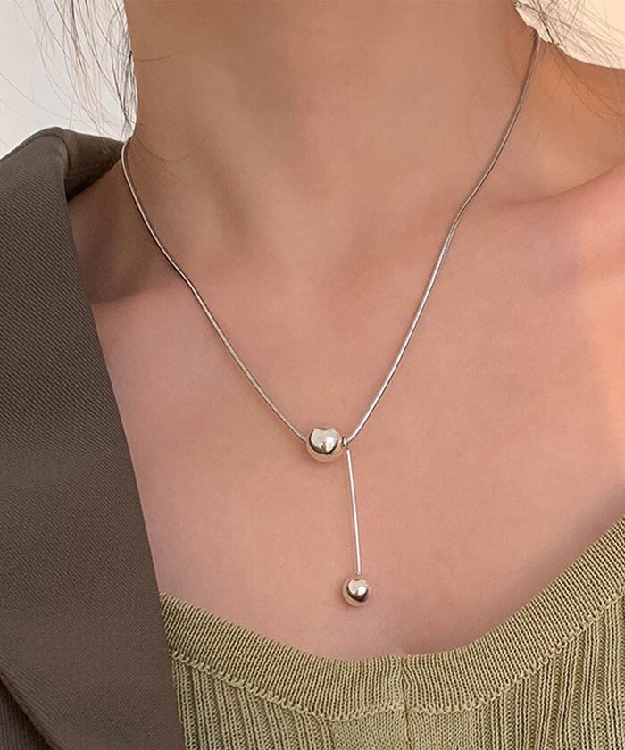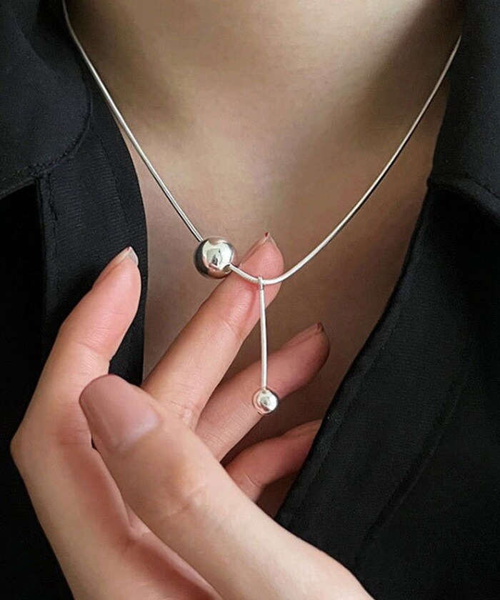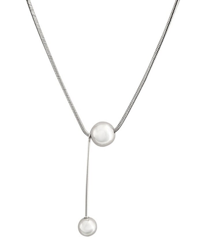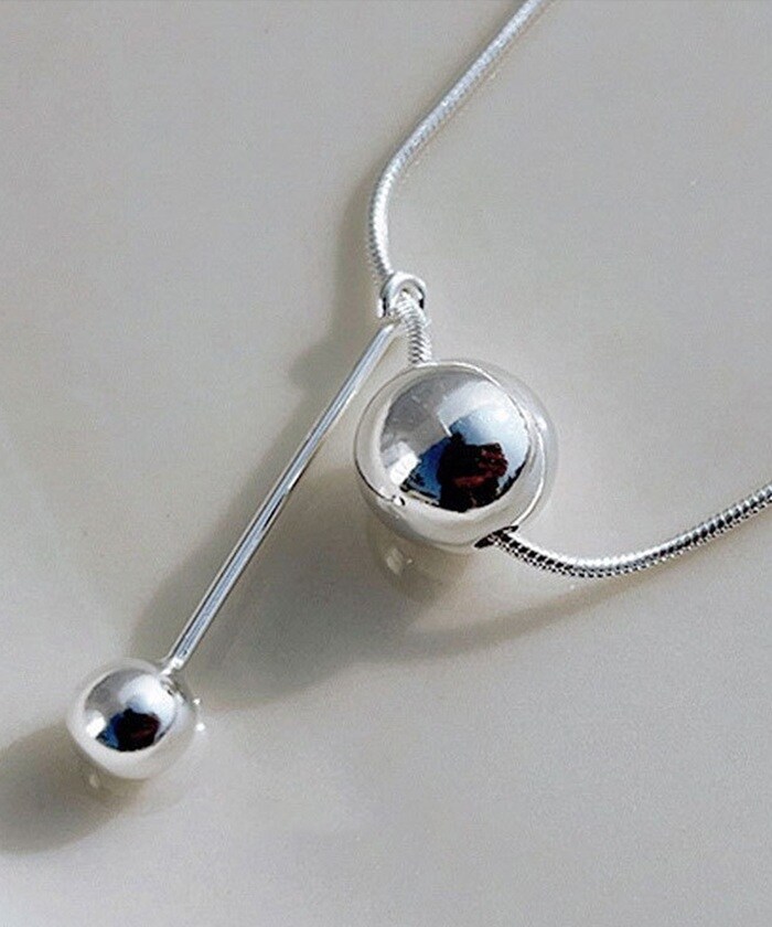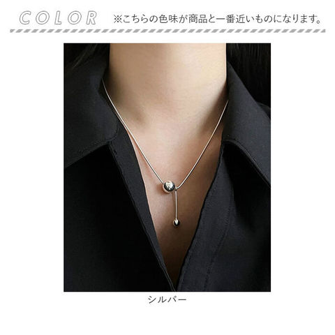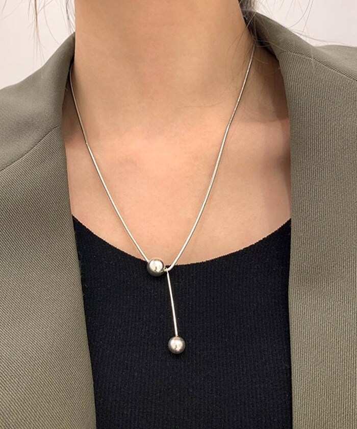 商品説明トップに大小2つのシルバーボールをあしらったシンプルなネックレス。シンプルながらも、首元にほどよい存在感をプラス。